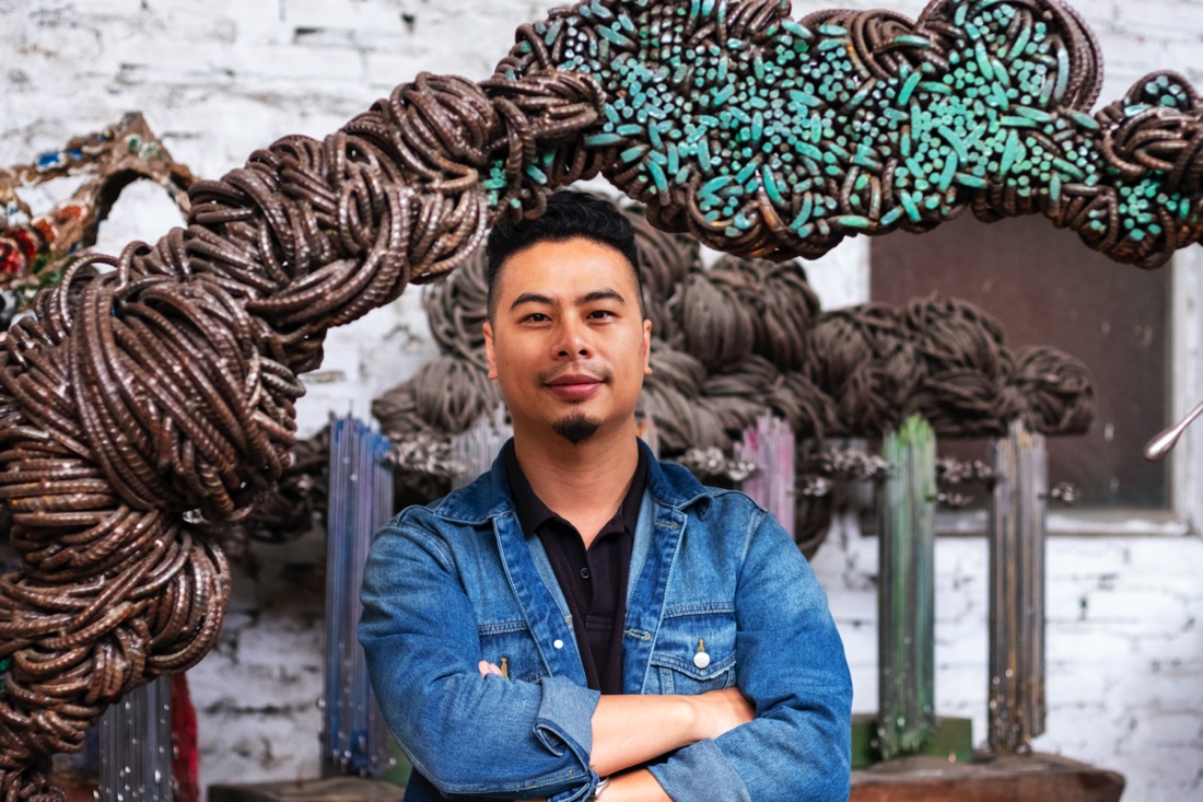 “I chose to display contrasts by using heavy construction steel to express the multivariable movement of space and time through images of clouds in the vast sky. Those are the constant twists and turns of life,” explained Mr. Minh.