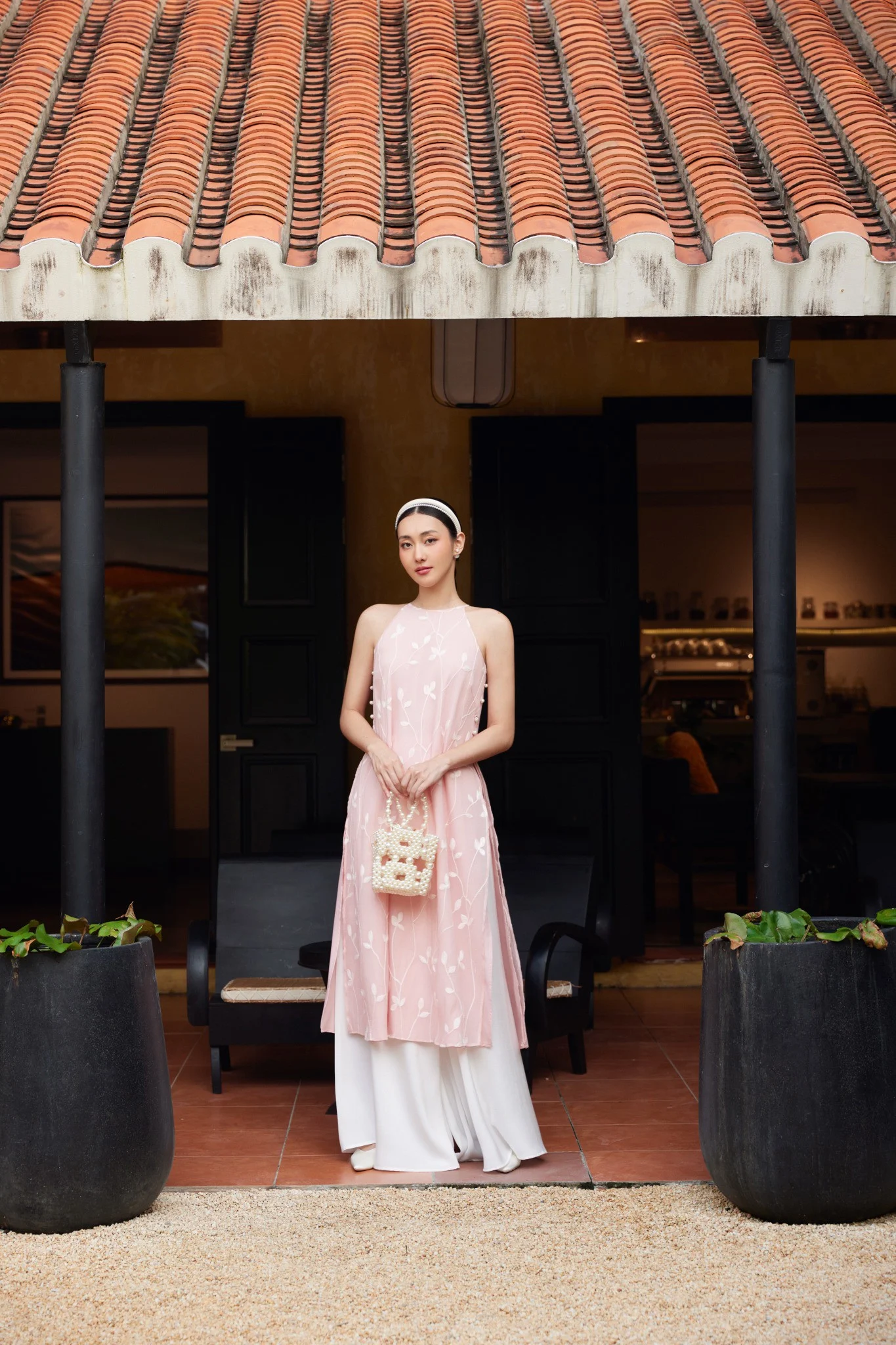 The ao dai strikes a perfect balance between simplicity of shape and clever highlighting of the wearer’s form. As such, there’s often no need to look for an elaborate ao dai in order to stand out for the Tet holiday. Instead, selecting trendy accessories can make a stronger impression when paired with the traditional outfit. While a pair of pointed-toe shoes might be a familiar choice, try opting for YSL symbol high heels. Moreover, don’t forget to carry a self-portrait bag with its signature bow, along with gold, silver or pearl accessories to enhance your style for the New Year’s day. All these elements will be highlights for a radiant new year.