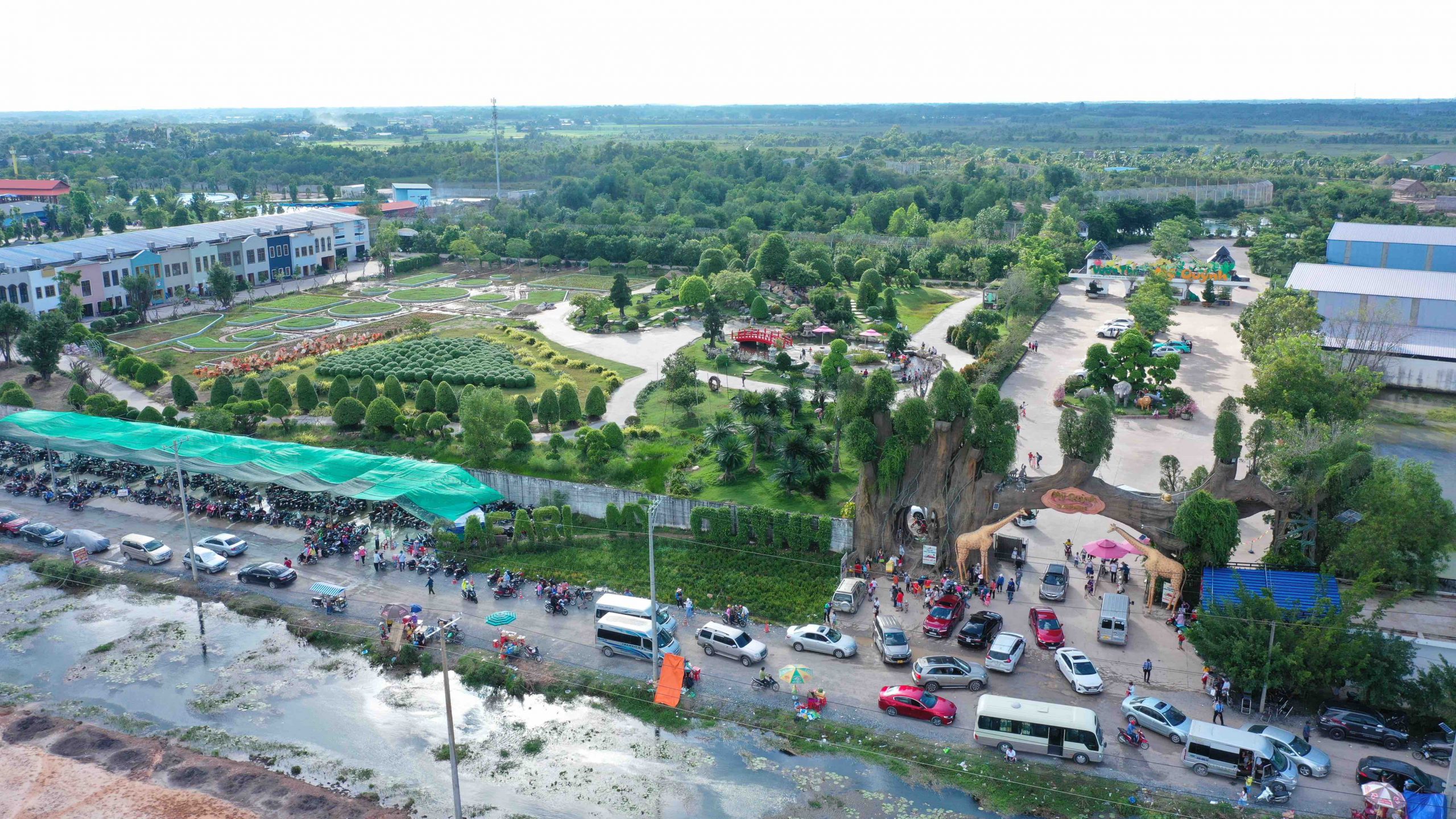 Visitors will find many activities and spaces to explore, including indoor and outdoor playgrounds with trampolines and ziplines; a bonsai garden and koi fish pond; and high-class resort facilities. Best of all, My Quynh Safari recently launched a safari program, where tourists can travel inside a caged vehicle and feed tigers, lions, rhinoceroses, etc.