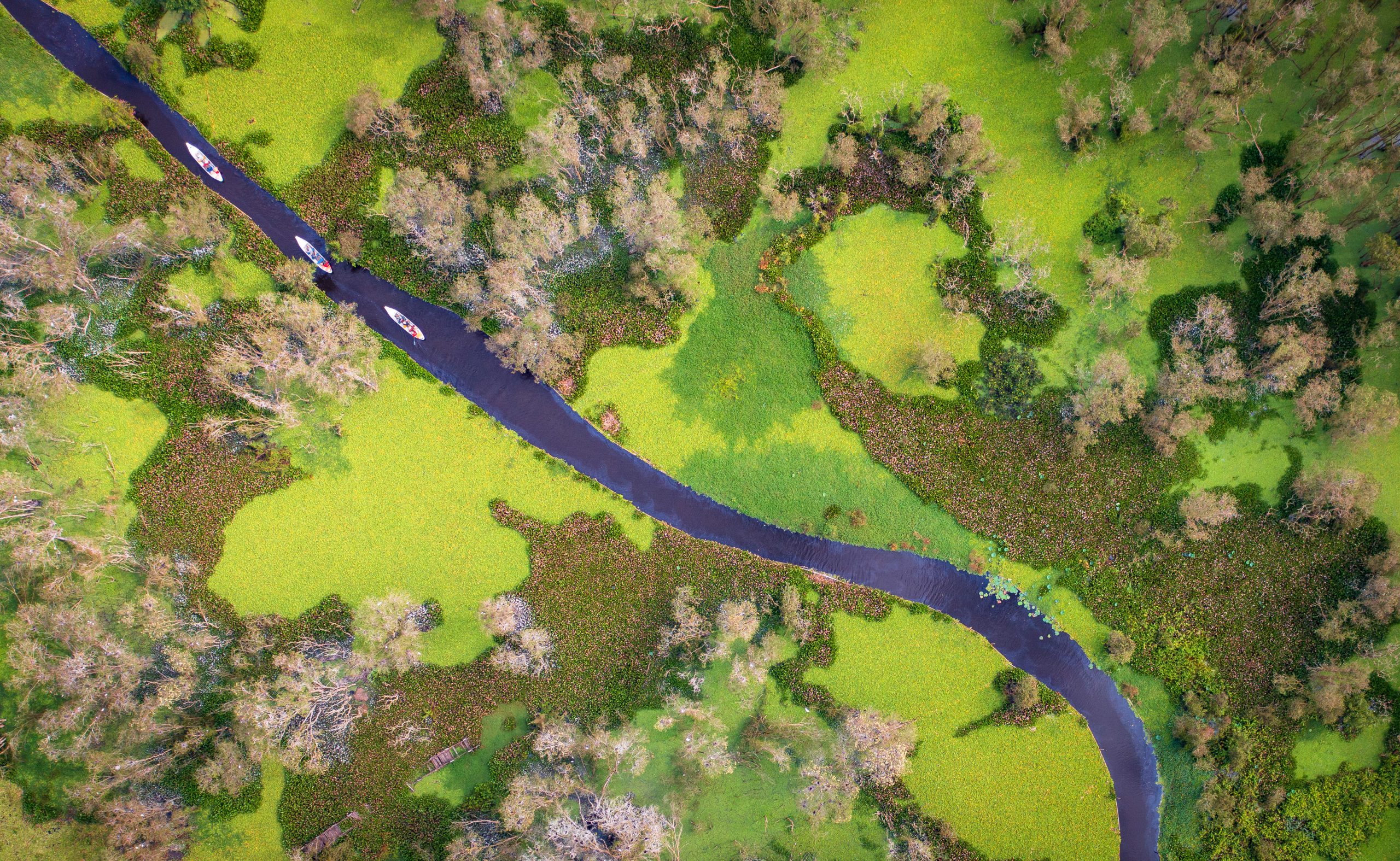 Amidst an expanse of straight rice fields in the Long Xuyen Quadrangle, surrounded by canals rich in alluvium in one of the most prosperous downstream regions in the Mekong Delta, the Tra Su melaleuca forest emerges like a precious gem. Tra Su serves as an exemplary model of the successful integration of natural conservation and sustainable tourism development.