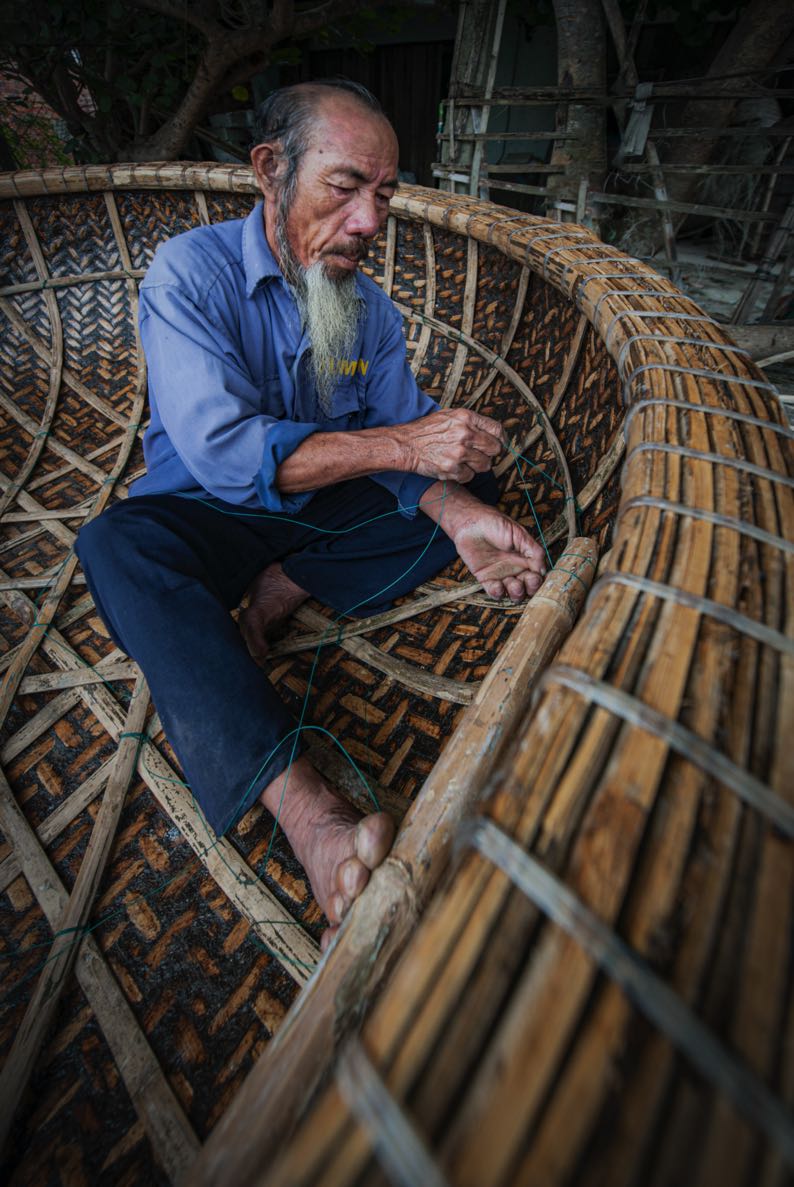 Thanks to their light weight and small sizes, basket boats are easier to push into the sea than long-bodied vessels. They rarely capsize as they ride on the waves instead of cutting through the water. Basket boats typically have a diameter of either 2.2m or 1.8m. Boat-weaving calls for dextrous hands, patience, great skill, and a lot of experience. More importantly, the artisan must work with devotion and meticulous care, as one simple mistake could lead the finished boat to leak or even capsize.
