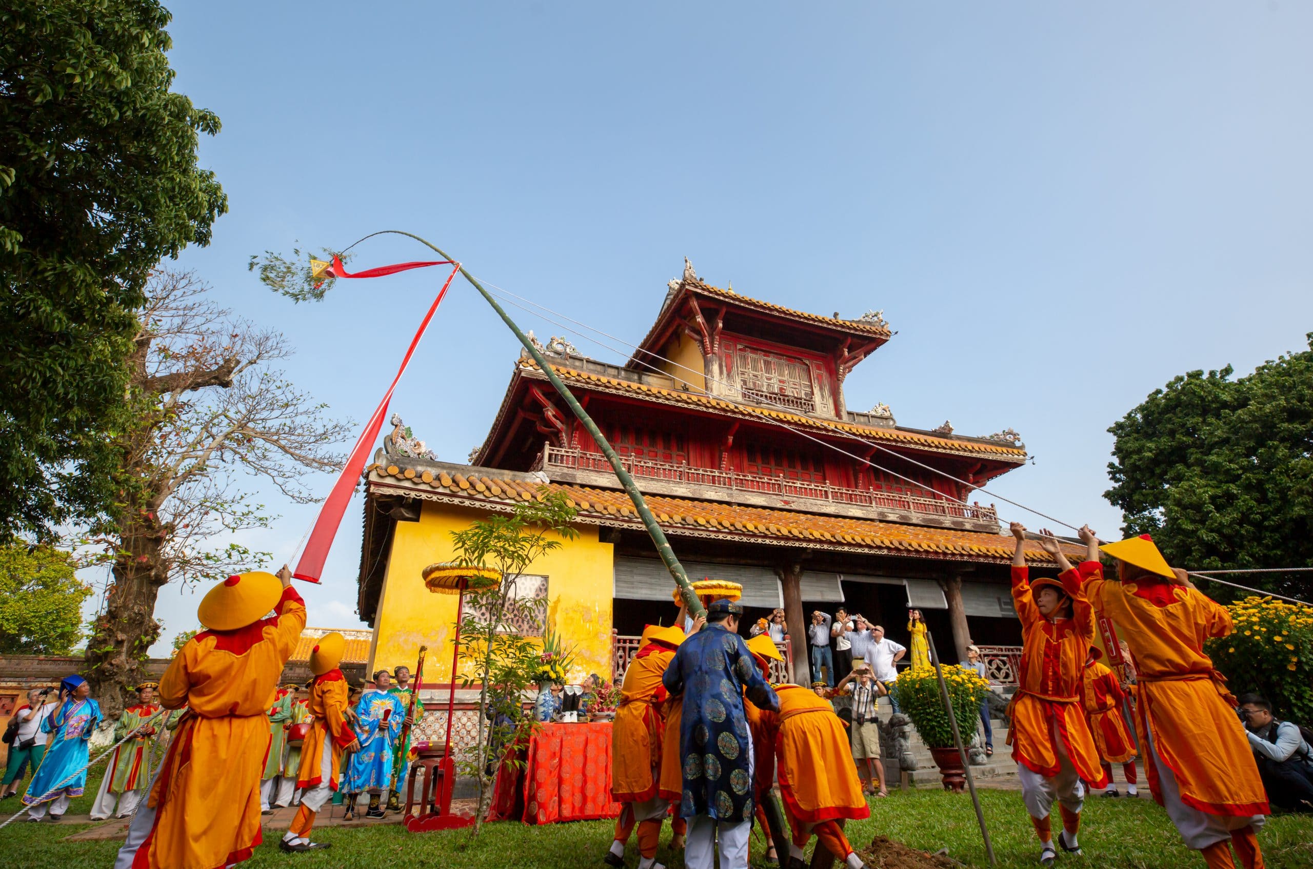 Some temples or shrines dedicated to worshipping the Mother Goddesses or the Tran Dynasty and associated with the mediumship ritual called hau dong attract devotees during the Tet holidays, as well as visitors from across the globe who seek and pray for fortune and prosperity in line with traditional beliefs. Landmarks such as Tay Ho Temple (Hanoi), Day Temple (Nam Dinh), or Hon Chen Palace (Hue) entice New Year’s visitors thanks to interwoven elements of local beliefs and customs.