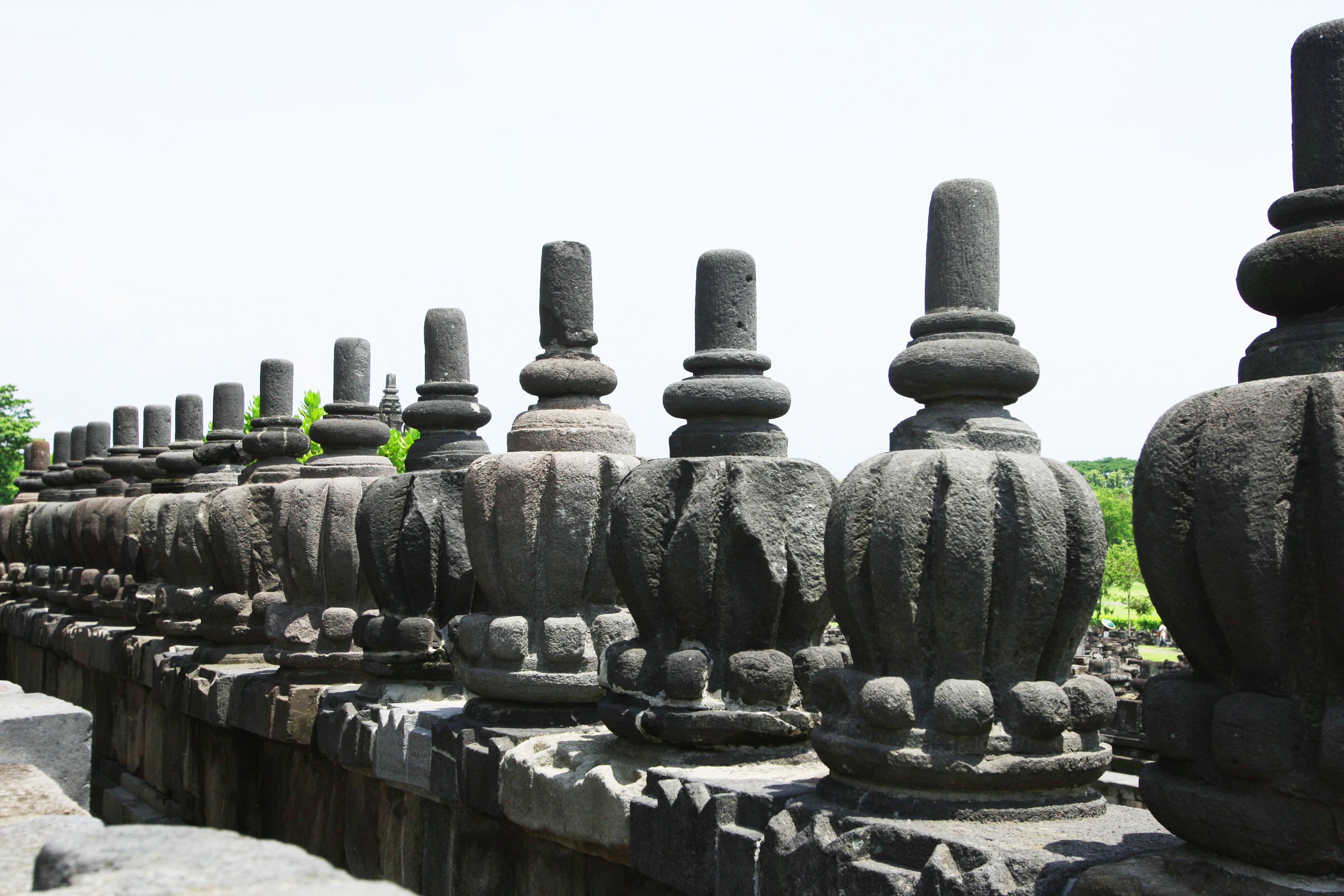 Reminiscent of Cambodia’s Angkor Wat in terms of its towers and carvings, Prambanan features one central tower and eight surrounding lesser towers. Around these towers stand the ruins of hundreds of other towers. The compound has been carefully restored. While it does not match its original grandeur, it is still impressive. Beautiful decorations abound, including statues within the towers, bas-reliefs portraying legends adapted from the Ramayana, sculptures of animal heads, reliefs of the sacred tree Kalpatura, or Heaven Tree, and humanoid bird figures known as Kinara.