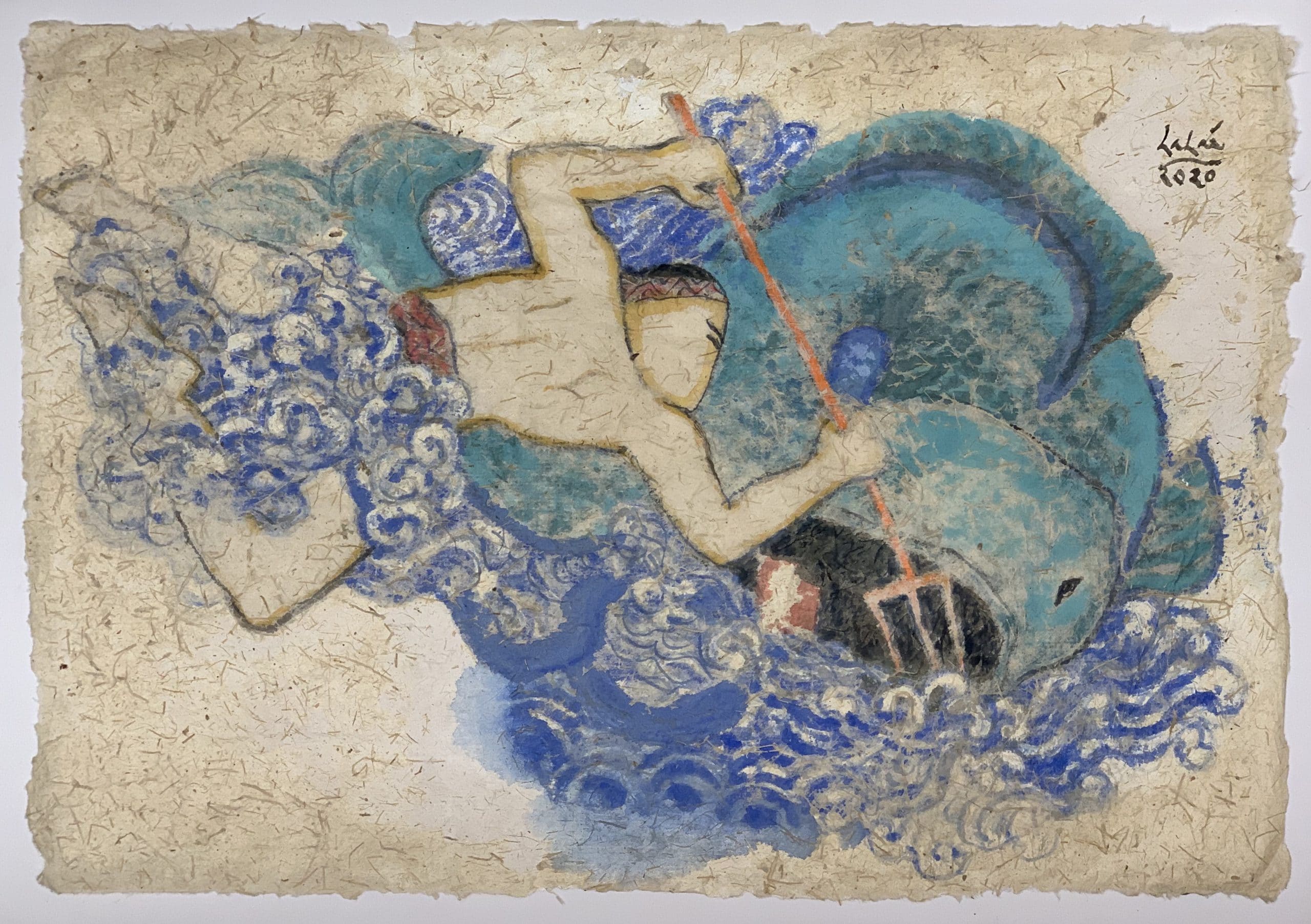 At that time, Lac Viet was sparsely populated and fraught with evils that wrought havoc on the people. In the East Sea dwelled a huge, long monster called the Evil Fish. It often opened its vast mouth and swallowed entire fishing vessels together with all the people on board. Hearing of this, Lac Long Quan stood on a big boat, holding a sharp trident and sailed out to sea to eliminate the Evil Fish. When he came upon the monster, Lac Long Quan threw his trident into its mouth with all his might. The injured Evil Fish writhed, tossing up waves and froth. Lac Long Quan immediately chopped off its head.