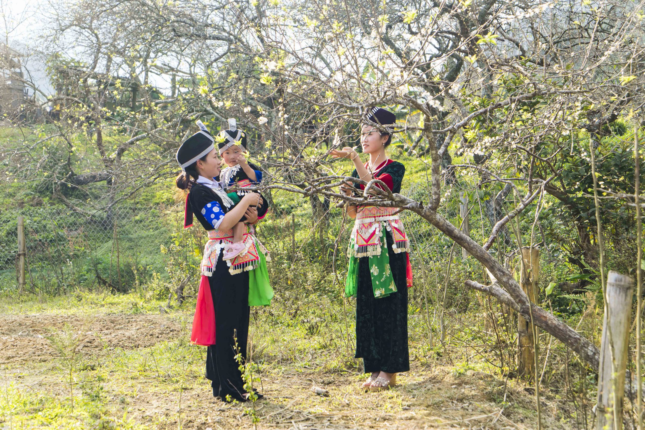 Wishing to reach the highest lands of Western Nghe An, our journey continued toward Ky Son district, an area perennially shrouded in mist. The images captured by our flycam paint a majestic picture, with a delicate thread of road cutting through mountainous forests. Ky Son boasts Puxailaileng Peak, approximately 2,720 meters tall – the highest mountain in Nghe An and the Annamite Range. For mountain climbers in Vietnam, reaching the summit of Puxailaileng is a must. Names from Ky Son that linger in our memories include Cong Troi (Heaven’s Gate), Muong Long, Muong Xen, and scattered high-altitude villages like Huoi Giang, engulfed by floating white clouds. The H’Mong people in this village greeted us warmly with corn wine and dried meat. By the fire, men chatted in a mix of Kinh and H’Mong languages, while women busily ground corn, their vibrant brocade dresses swaying rhythmically as they worked the grinding mortar. They invited us to return when the plum flowers bloom, heralding the arrival of spring.