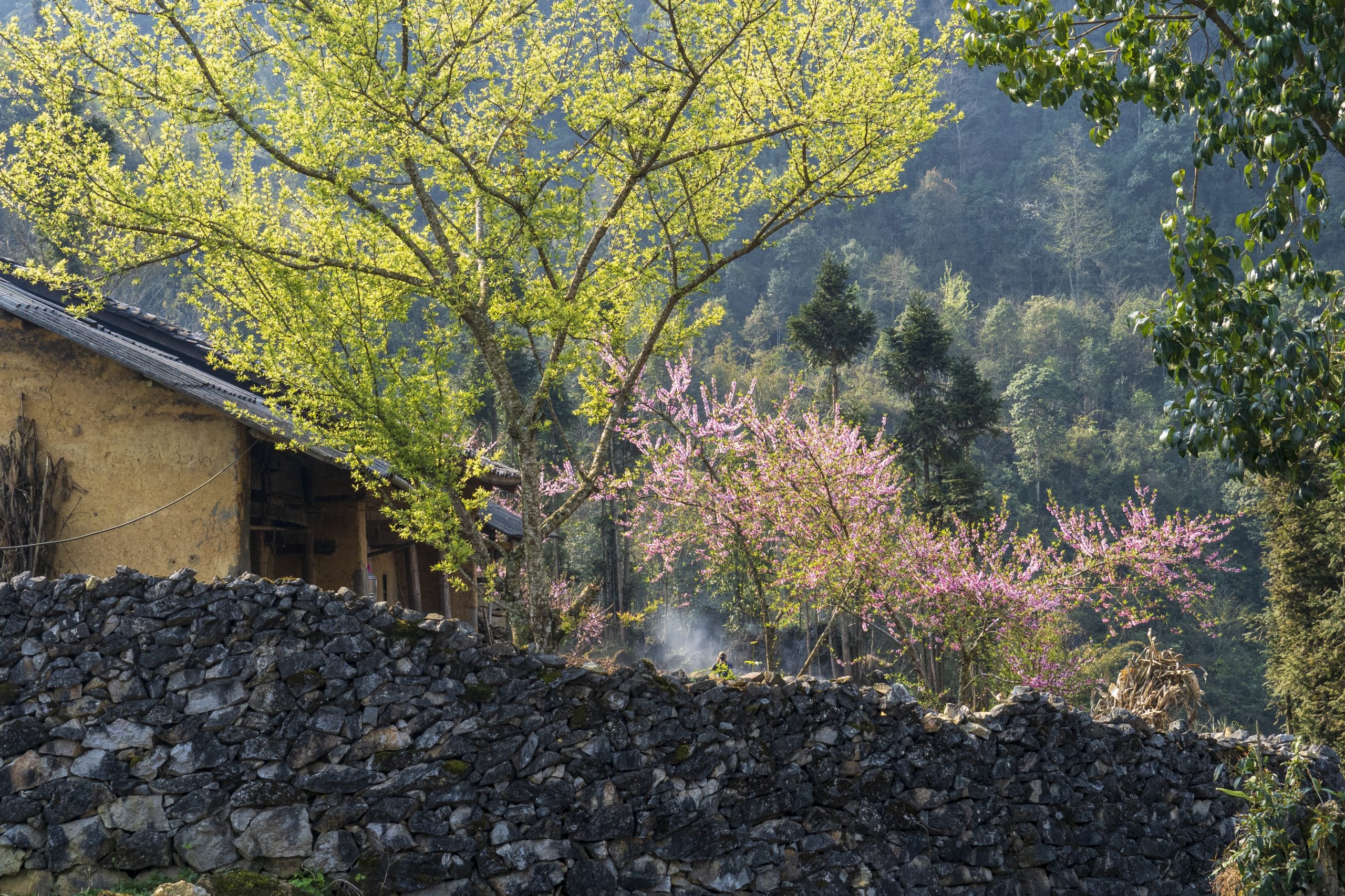 I left Hanoi at 5 am and traveled 400km in 10 hours to reach Pho Cao, Dong Van district, Ha Giang province as the misty sunset fell. Looming in the mist were figures of women carrying bundles of dry wood home after a day’s work. Quiet hamlets nestled under the peaceful mountains.