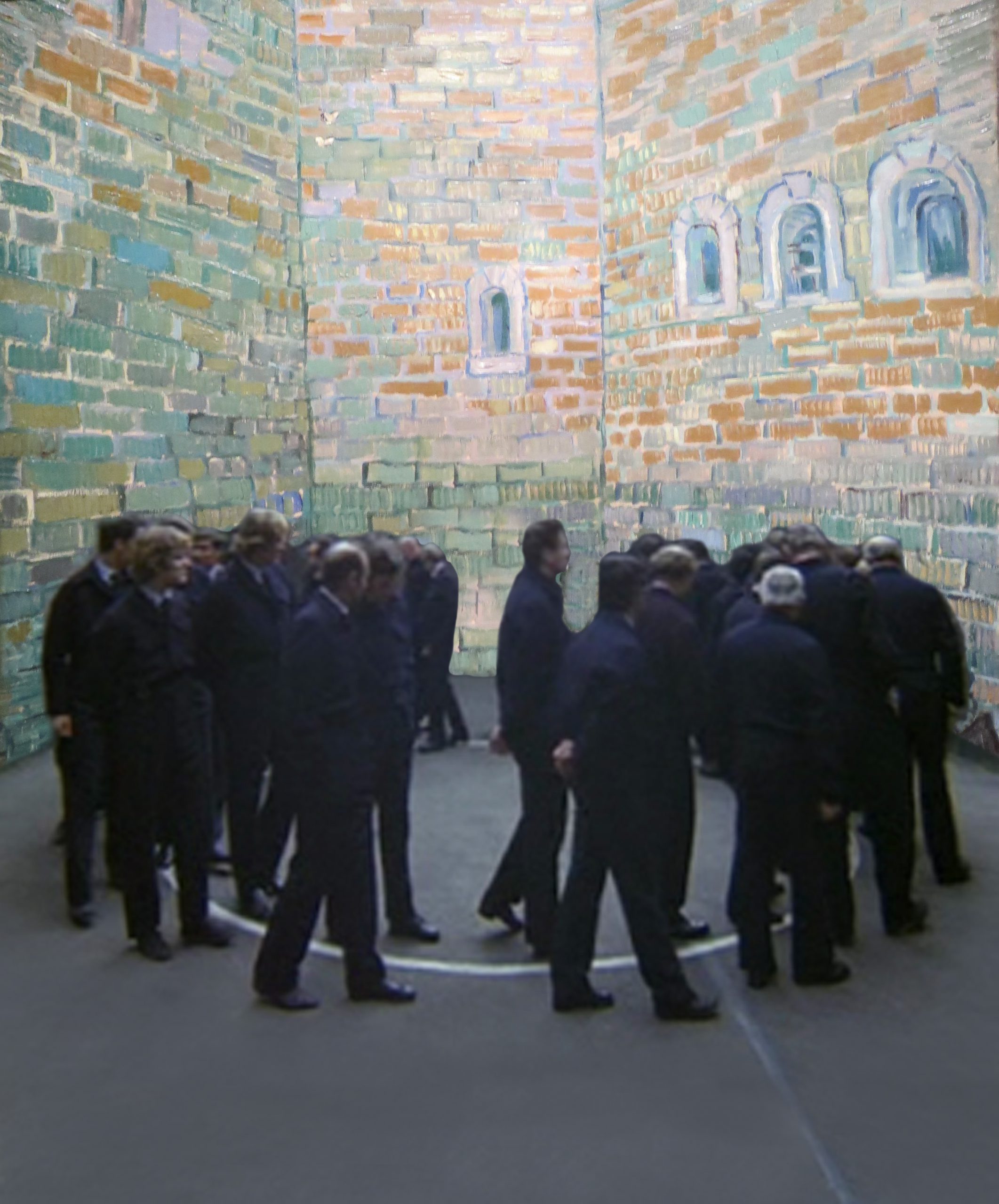 Expressionism may be a direct bridge between painting and cinema, but some films focus on single works that not all viewers might immediately identify. The titular Anthony Burgess novel was not the only inspiration for the Stanley Kubrick vehicle A Clockwork Orange (1971) to explore human identity in a prison setting. A shot of inmates walking in a circle underneath towering walls echoes Prisoners Exercising by Vincent Van Gogh. By bringing the painting to cinematic life, Kubrick stressed the oppressiveness of incarceration, where humanity is obscured and erased by concrete walls.