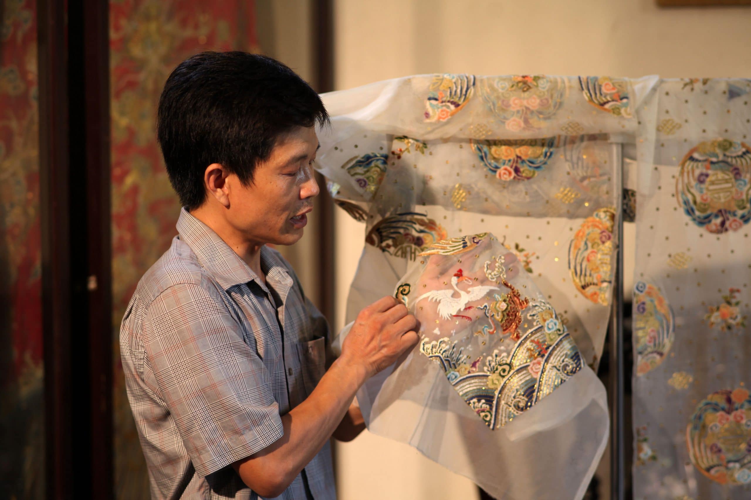 Quality embroidered pictures require a good sense of aesthetics, patience and great skill to produce. Veteran artisans have mastered each step from creating the frame to sketching the designs to selecting the threads. Anyone who has visited an embroidery workshop knows how much work is involved and how loathe artisans are to throw away even the smallest threads, fearful that they’ll never find new threads of that exact same color. This art form requires dedication and attention to detail. Nonetheless, some artisans in their nineties are still happy to work, and do so out of passion.