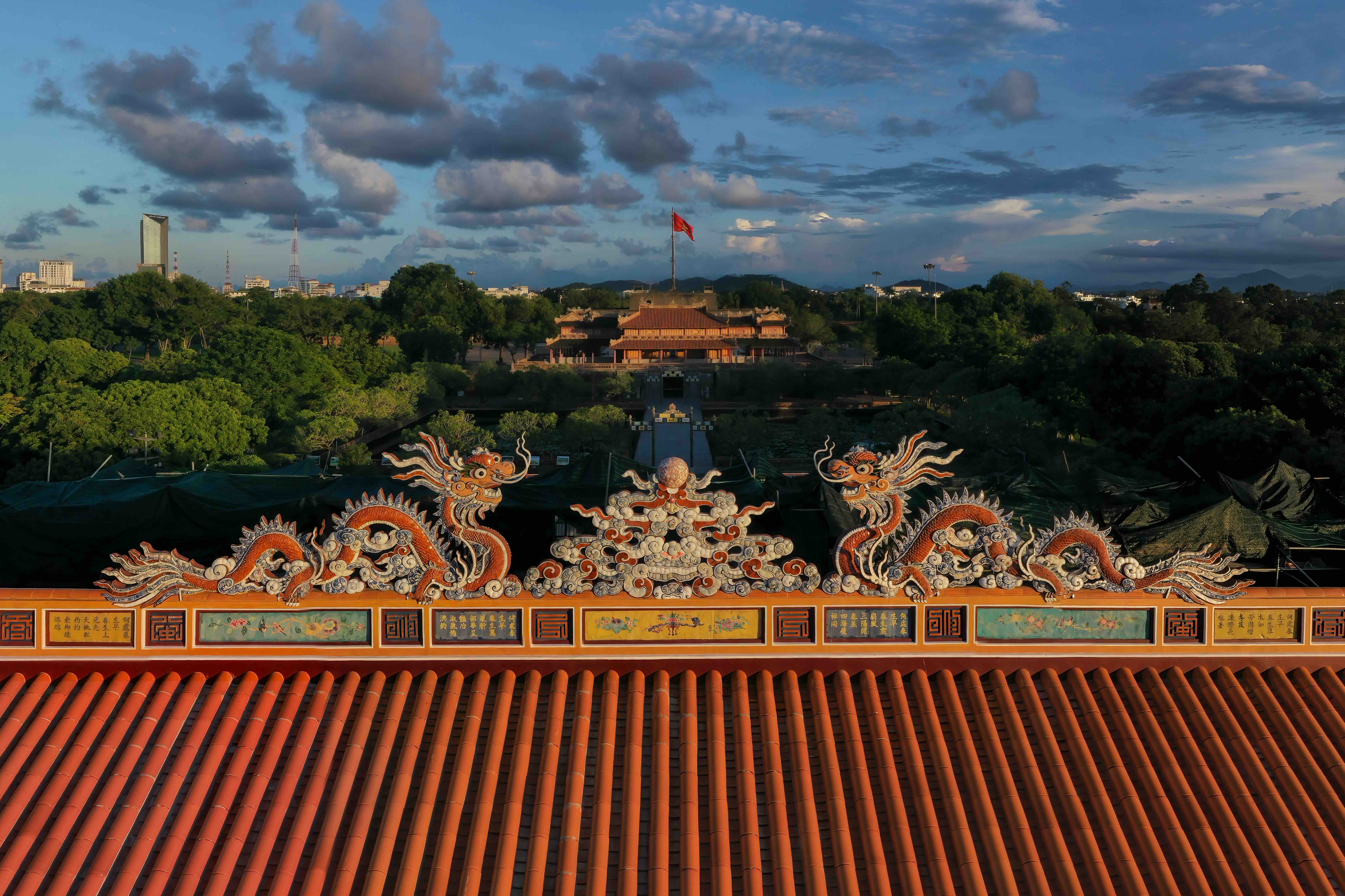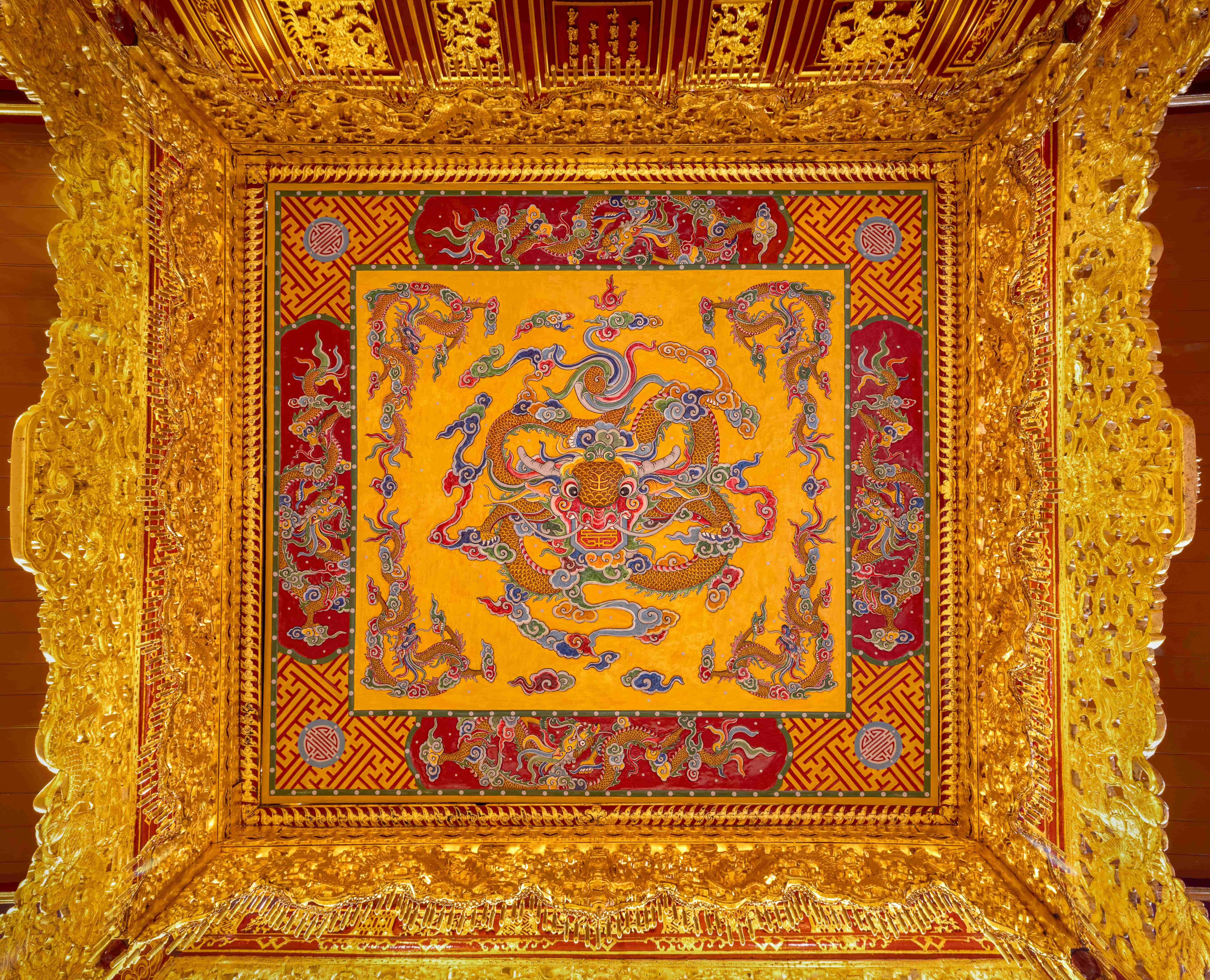 Many will tell you that in Hue the boundary between courtly and folk architecture is thin. This is especially true of gilding. From palace interiors and royal furnishings to the horizontal panels and paired couplets that hang in princes’ residences and officials’ mansions, onward into communal houses and pagodas, and on altars and ritual objects everywhere, you see fine gold lines on scarlet lacquered backgrounds. Come to Hue and stand inside halls whose surfaces were burnished by countless hands. Let yourself be still and feel the space. The palette speaks for itself: red for vital energy and the life-force, gold for nobility and a spirit of liberation. Together, these colors carry an ancient desire to make living spaces brim with vitality. In their glow, we witness a vigorous renaissance of Hue’s heritage today. Thanks to this clear intention, gilded lacquer is not ostentatious, serving to highlight the architecture rather than show off. It is a language of emphasis, not domination, aligning highlights with structure so that beams, brackets, and motifs read cleanly. In a dim hall, gilded lacquer catches the smallest light and returns it as warmth. In bright sun, it holds its dignity, never glaring. To watch the artisans work is to see time made visible: each layer settles, each line breathes, and the final surface seems to glow from within as if polished by memory and air. And shared silence.