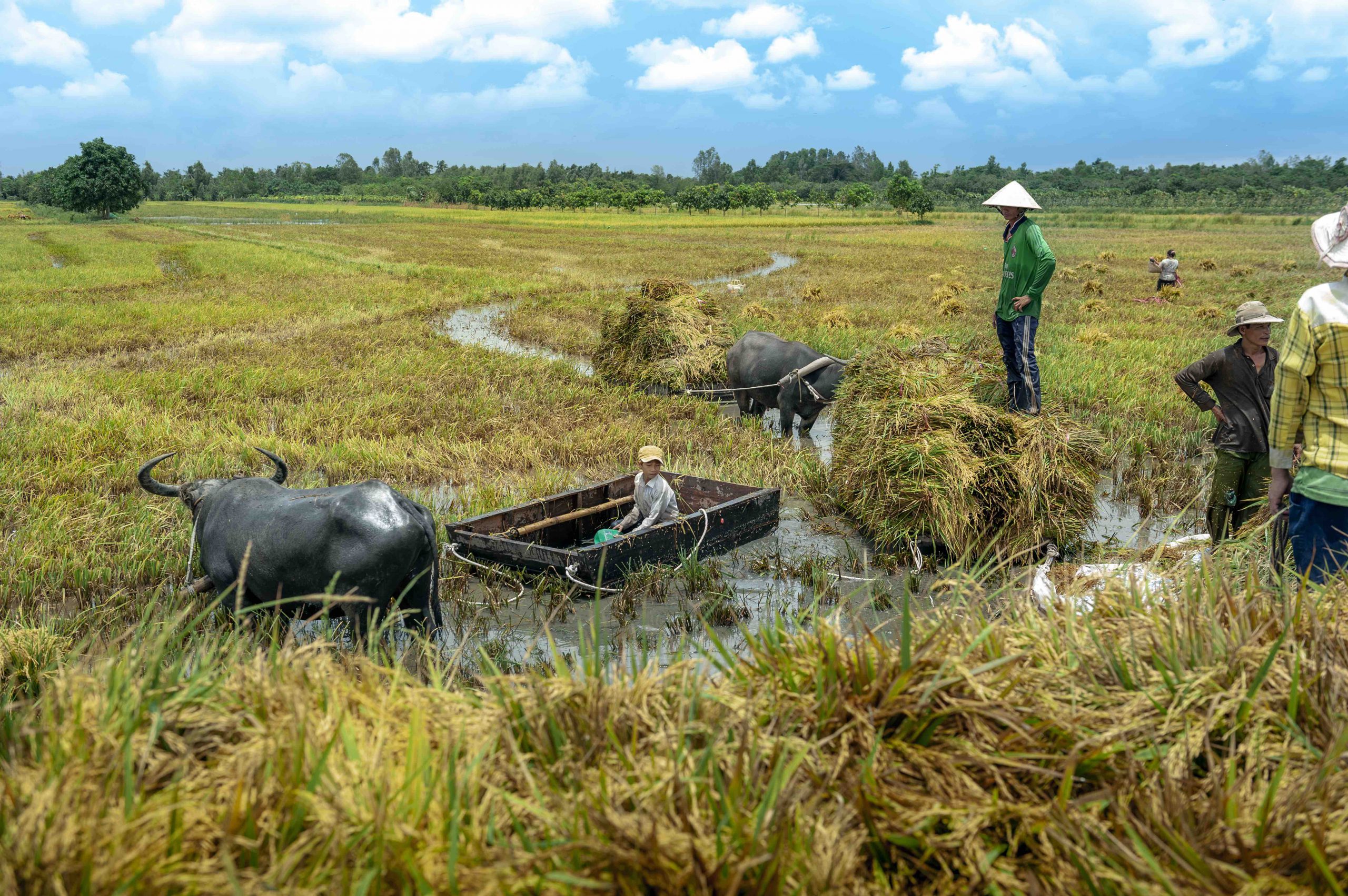The straw stack served as a playground for children, a meeting place for young lovers, and a symbol of Vietnamese resilience during wartime. To avoid shrapnel from American air raids, people crafted straw hats and raincoats for children to wear on their way to school. Straw was also used to make thatched roofs, mud walls, and lime-straw ceilings in colonial-era villas in Hanoi. It seems that almost every aspect of Vietnamese life involves straw. From keeping livestock warm in the freezing northern winters to providing organic fertilizer for fields and gardens, farmers rely heavily on straw stacks. A straw stack symbolizes abundance and prosperity, as a good rice harvest yields ample straw to create a large stack.