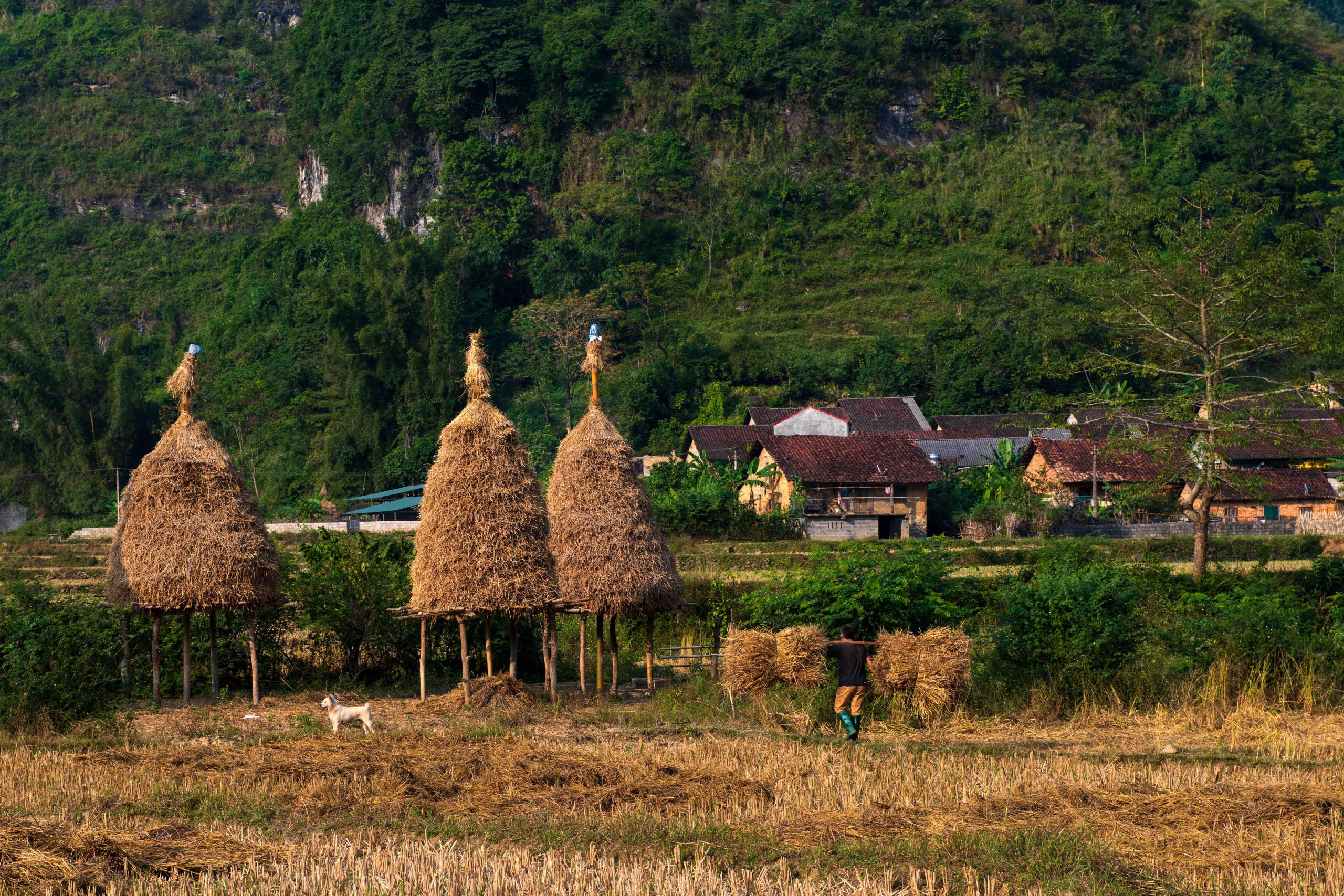 Throughout history, the straw stack has brought peace to rural life and the nation, softening the hardships of war. Những làng đi qua (The villages we passed) by Quang Dung states: “Bamboo groves and straw stacks are no longer lonely. Dry almond leaves crack under the footsteps of guerrilla fighters.”