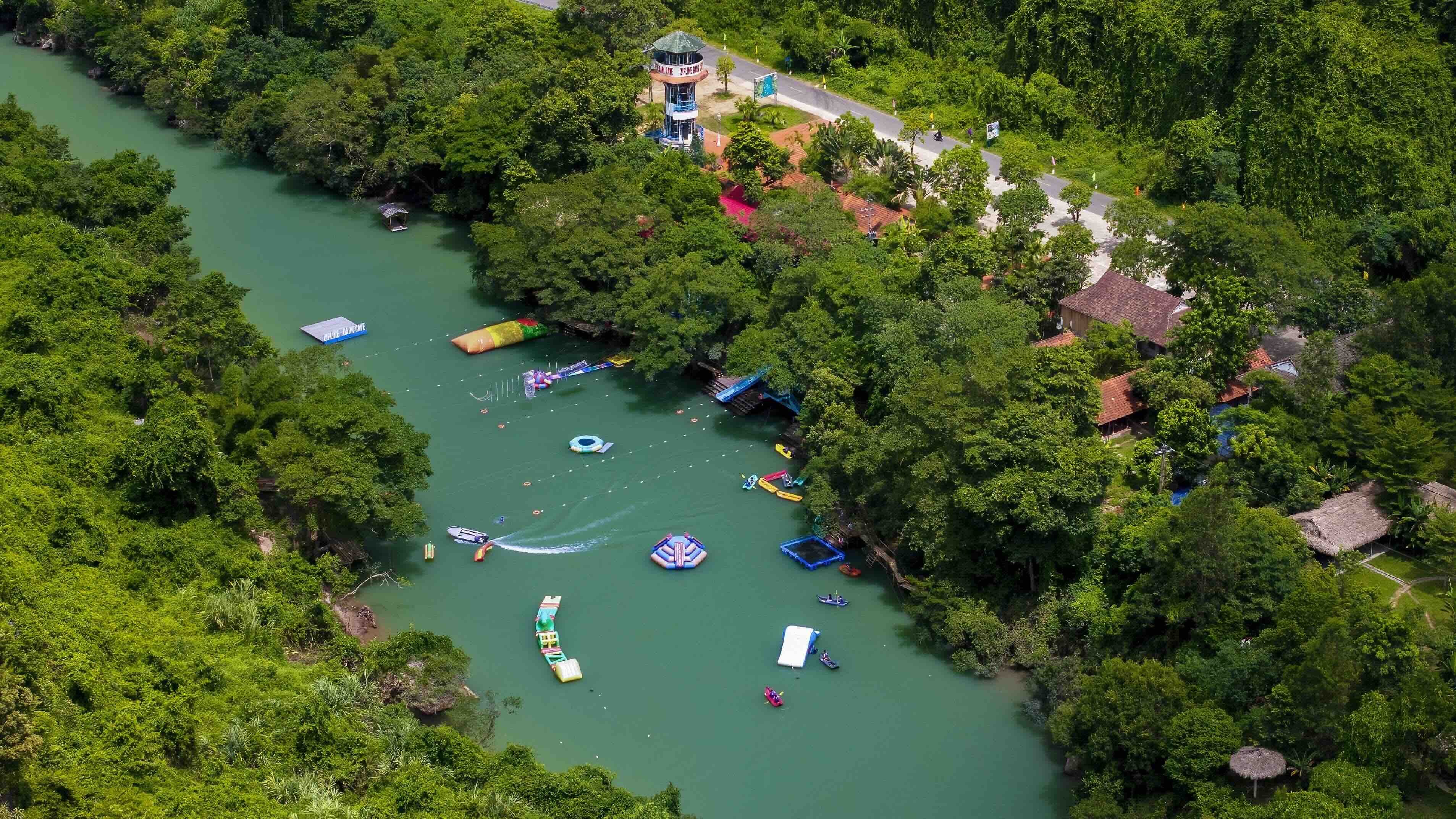 Tien Son is just one of over 30 caves open to tourism in Quang Tri. The following day, the group ventured to the Chay River, a tributary of the Son River, to experience exciting water sports. They also explored Dark Cave, its entrance veiled by shimmering green stalactites like the curtains of an ancient temple. This is the only cave in Vietnam where visitors can enjoy a mud bath.