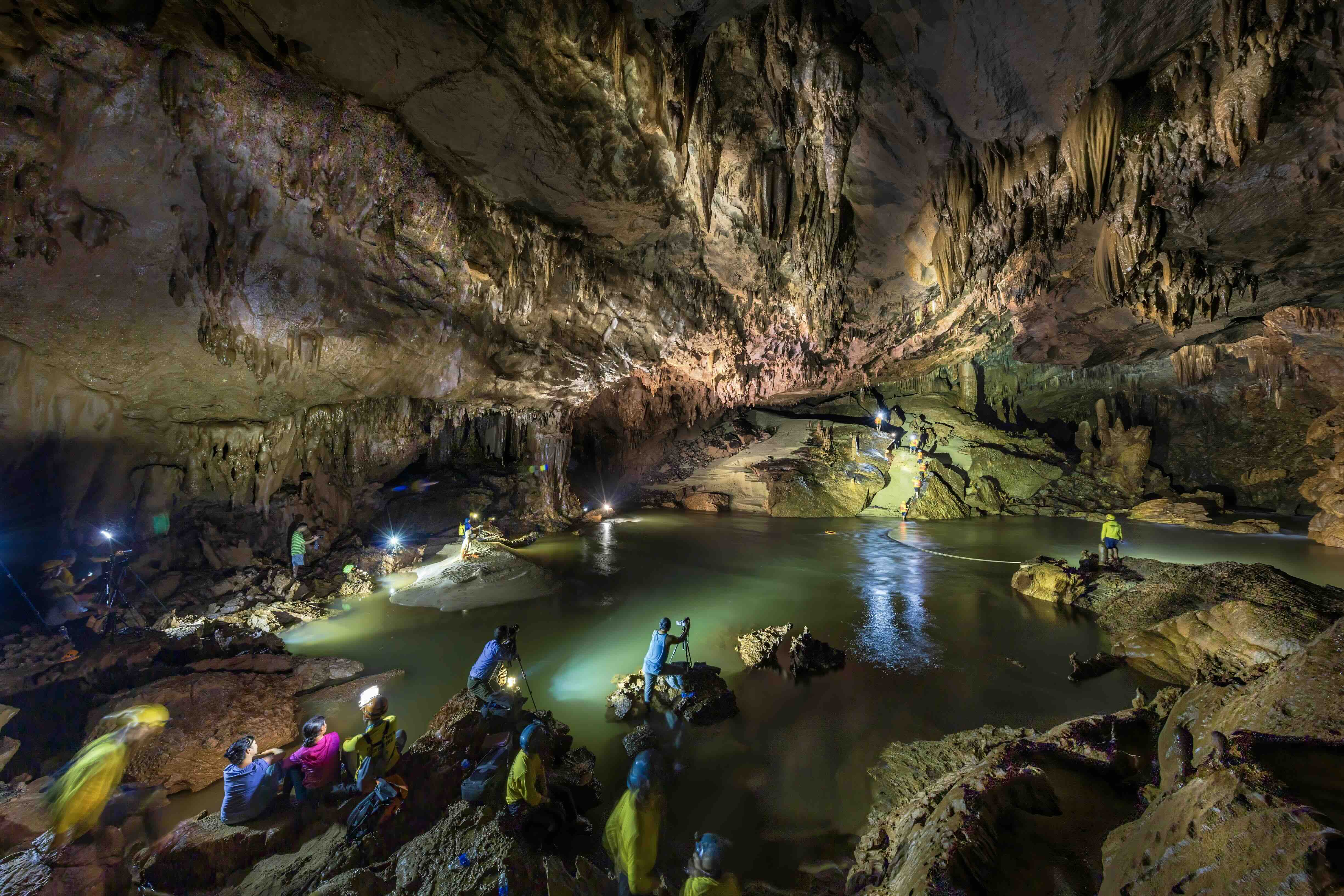 On the second day, the whole group explored Cha Loi Cave. This spectacular experience required minimal personal belongings and maximum physical agility to navigate the cave’s narrow spaces and capture awe-inspiring photographs of untouched stalactite vaults. Participants climbed rugged slopes and waded and swam along underground streams, all while marveling at rock formations shaped like hearts or the belly of a prehistoric whale. Though physically demanding, the trip was highly rewarding, thanks to the enthusiastic support of Netin Travel and local photographers.