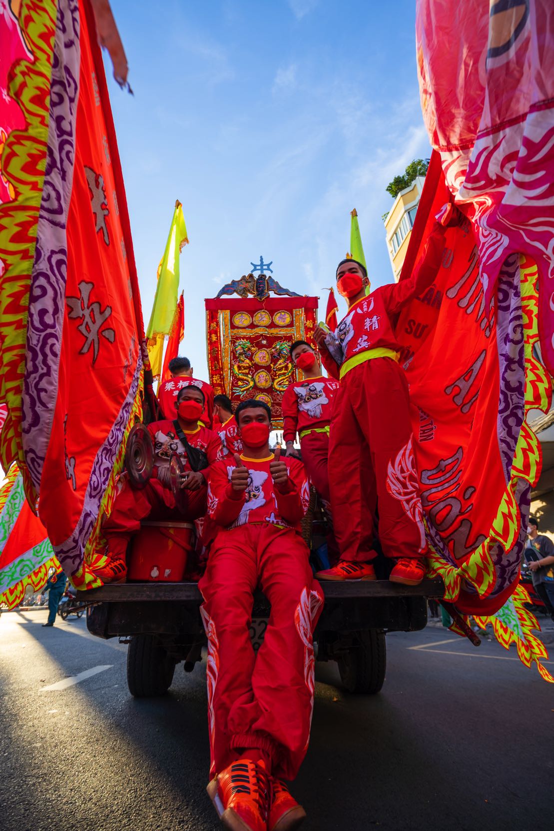 In addition to the street parade, the Lady and Lord Pagodas on Nguyen Trai Street in District 5 also draw their own share of visitors. While Saigonese people call it “Lady Pagoda” (chua Ba), unlike in an actual pagoda, no Buddhas are worshipped here. Its real name is the Tue Thanh Assembly Hall, for the worship of Lady Thien Hau, who is said to bless and shelter the unfortunate. Hoa people typically visit on the first full moon of the lunar year to wish for peace and happiness for their loved ones. The hall’s courtyard is designed so that coils of incense can be hung here, each bearing a piece of red paper listing the names of family members to wish them peace and prosperity. In the early spring mornings, when the air is crisp and cool and the light is pure, the incense coils hung around the courtyard resemble a work of art. Photographers arrive in droves to capture such moments.