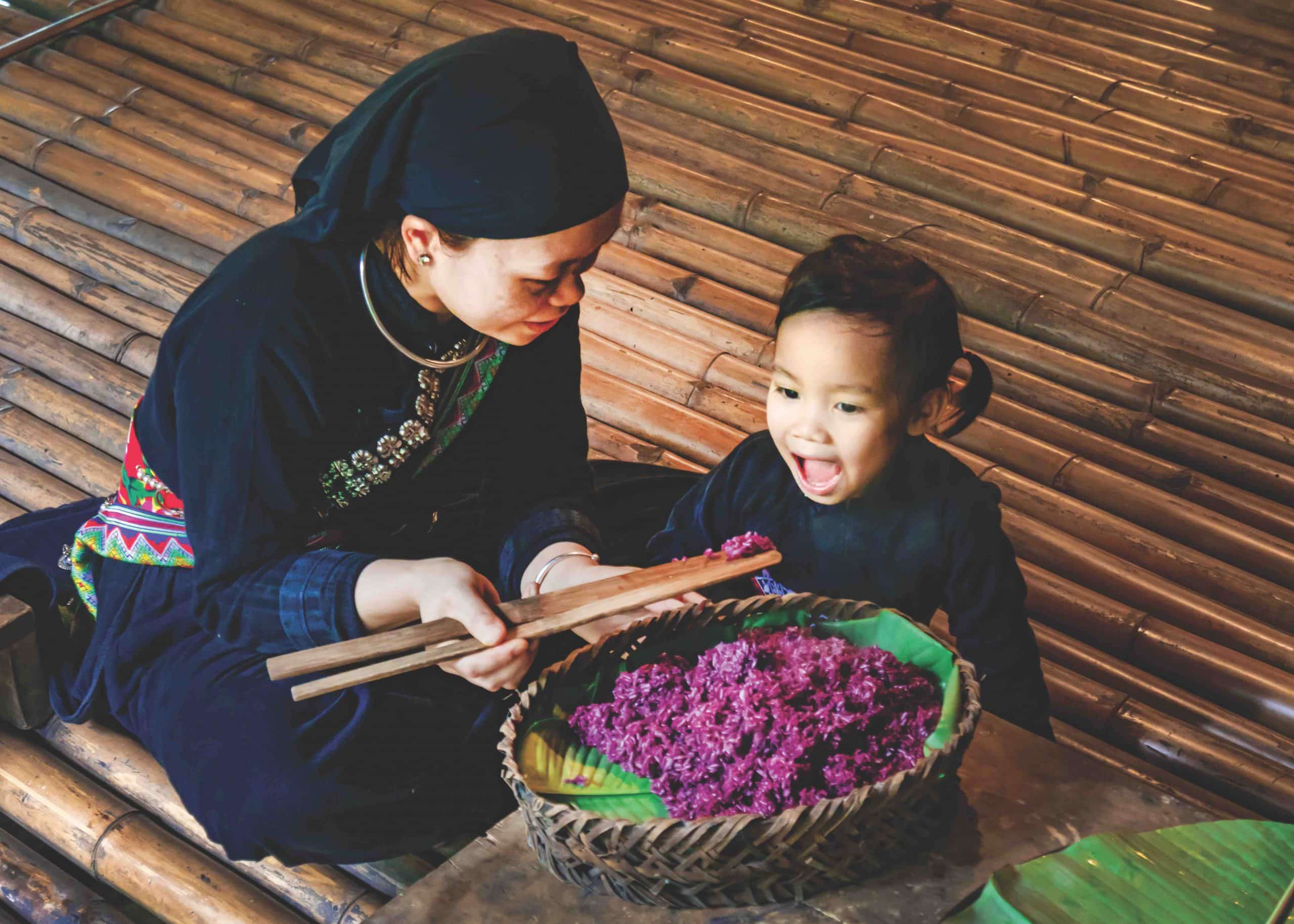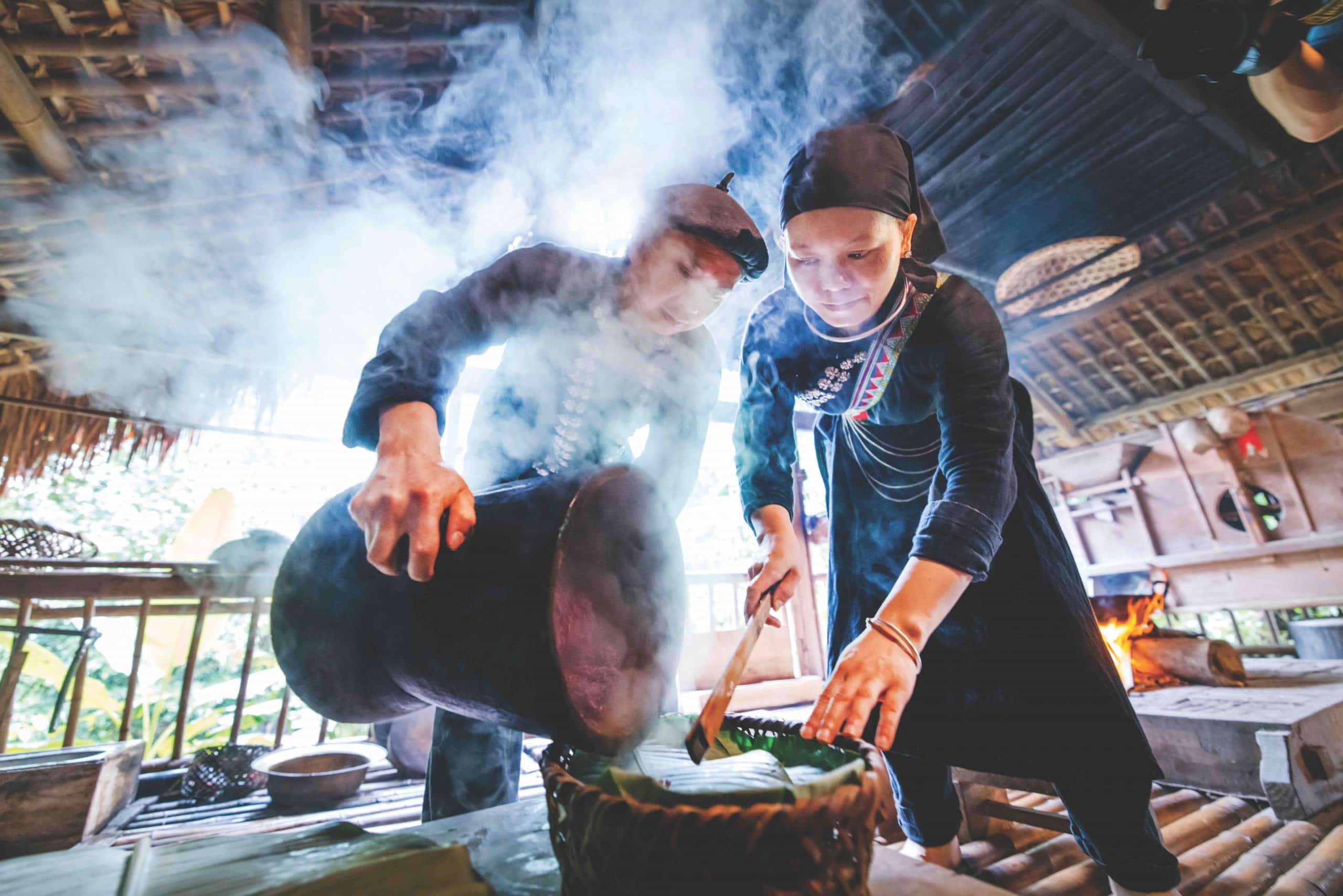 In addition to being used as residences, some houses serve as production workshops for processing tea and traditional medicine, making che lam (sticky rice ginger peanut bars), distilling liquor, and weaving. Visitors can sample products made on-site in these small workshops, buy them as gifts, or even try weaving egg baskets or making a batch of cakes with the locals.