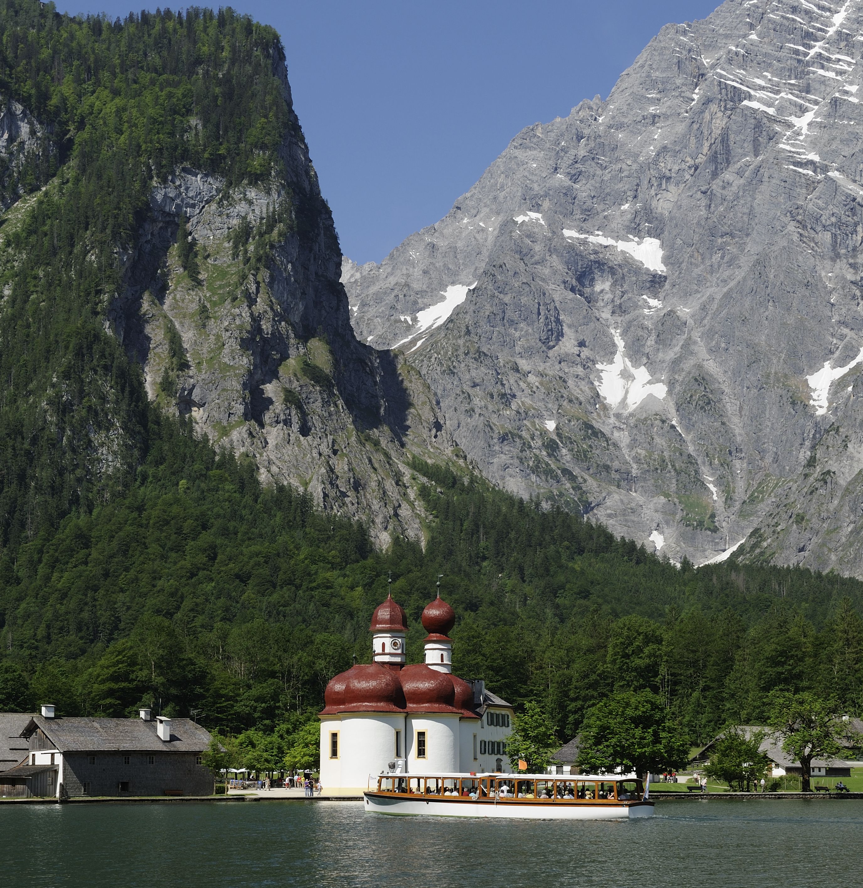 I arrived in Königssee at the end of summer, and found it crowded with lines of visitors waiting to buy tickets for electric boat tours around the lake. Despite the great numbers of visitors in peak seasons, the boats always follow a fixed schedule with no extra tours to avoid disrupting the lake’s serenity. There are two stops, St. Bartholomew’s Church and Salet, and I chose the tour to St. Bartholomew.
