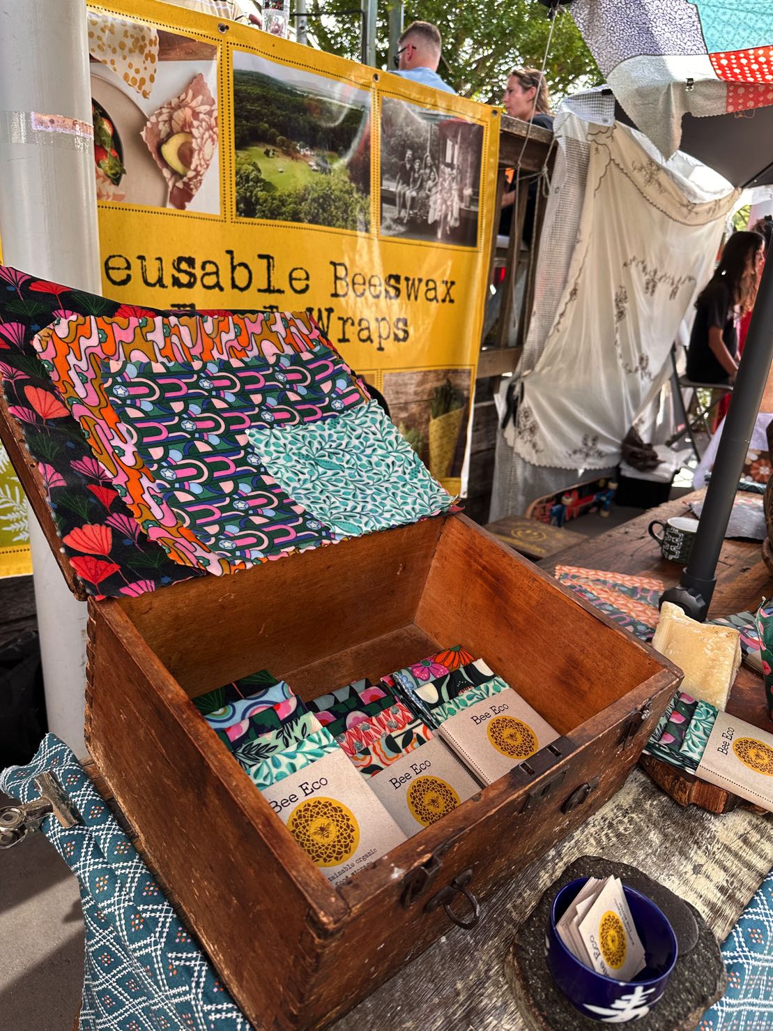 Judy, a vendor at the Rose Street Artist Market in Melbourne, has worked in the foreign currency exchange business for 30 years. She began sewing and crocheting as hobbies to balance her life, and sells her creations at the market every weekend. At the same market, a pair of sisters selling scented candles told me that they used to manage an essential oil brand for a decade before quitting. However, they set up shop here once a week since they miss meeting customers and talking to other people. Kikuchi, a girl of Japanese descent born and raised in Australia, is particularly passionate about washi (traditional Japanese paper) and uses this material in her handbags and earrings. Her products are Ikkanbari handbags that are made with a traditional Japanese technique. On average, it takes her a week to complete a single handbag. Eva Thien Huong, an Australian of Vietnamese descent, creates silk scarves that are printed on both sides with seams finished by hand. With a background in art and UX design, her products tell the stories of both Australian and Vietnamese culture. At Eumundi Market in Queensland, Michael Hutchins sells handmade electric guitars fashioned from wooden cigar boxes. He has been making these guitars for the past 15 years, inspired by the legendary guitarist Jimmy Hendrix – a famous musician who started out playing self-built guitars consisting of several strings and fashioned from cigar boxes.