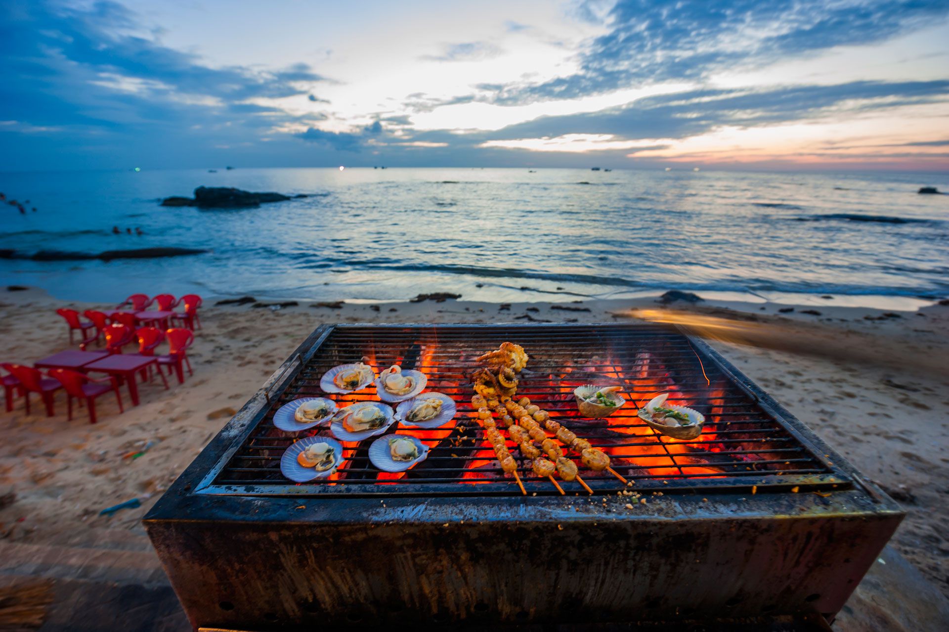 Near the estuary of the Duong Dong River lies the island’s largest market, known as Duong Dong Market. The commercial centre of Phu Quoc, the market stocks whatever local specialties are in season: pepper, fish sauce, fruit and fresh seafood. Prices are reasonable and vendors friendly. Fishing boats return at dawn and anchor in the river to unload their catches, which are carried up to the market. Seafood stalls in Duong Dong Market attract both locals and tourists, since the offerings are fresh and cheap. Known for its diverse seafood, Duong Dong Market offers live squid, processed herring fillets for salads, heavy barrels of shrimp and spider crabs, etc. Traders from the mainland come here to buy mackerel and other fish. Fresh-water fish shrimp, fish and crab are available too, with the fresh-water crabs rivalling sea crabs in size and being famed for their sweet, delicate flesh. visitors should sample local dishes such as Tét cakes with molasses, crab balls, fish balls and rice cake with mackerel soup.
