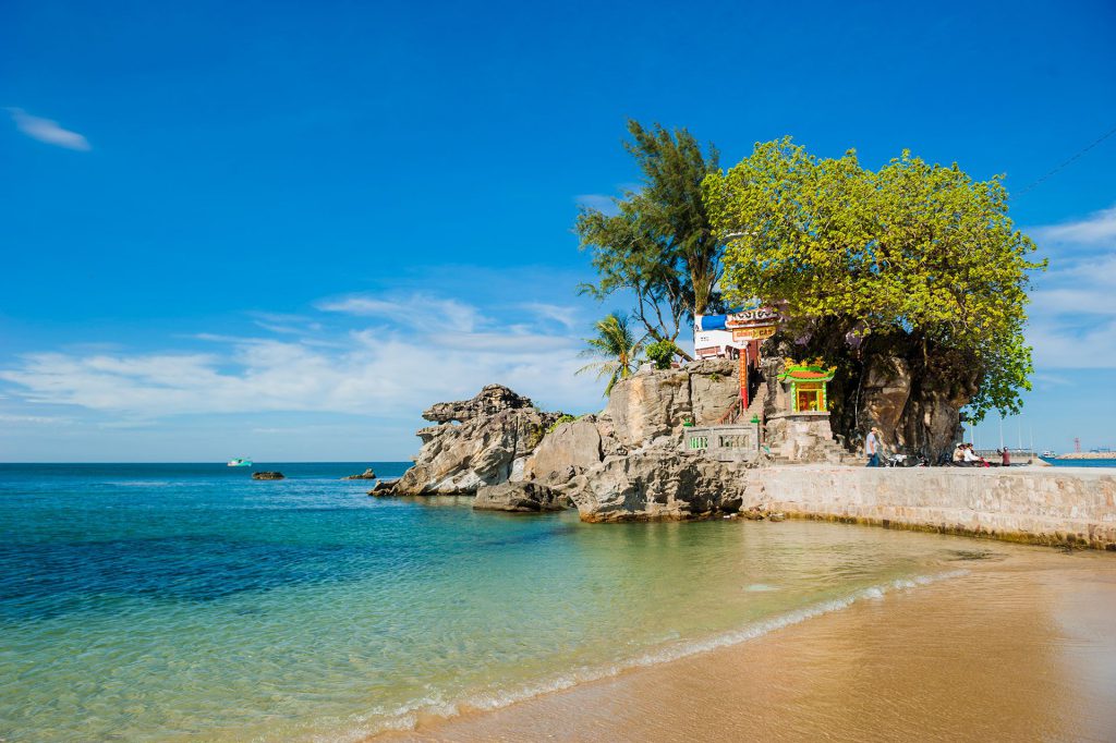 The Duong Dong River starts in the Ham Ninh Mountains, formed by various streams. The river flows through Phu Quoc Town and flows into the sea to the west, under the Cau Rapids, an area of undulating rocks beneath a huge rocky mountain. The most notable landmark is the ancient and sacred Dinh Cau Shrine, reportedly dating back to the 17th century when fishermen from Central vietnam settled here. Facing violent tides and storms, many of these early fishermen perished. When a cliff arose over the sea, the locals deemed it a good omen and built a shrine on the rise. Here, they perform rituals before setting out to sea. local fishermen believe that praying here brings them protection, and the shrine’s fame has spread.