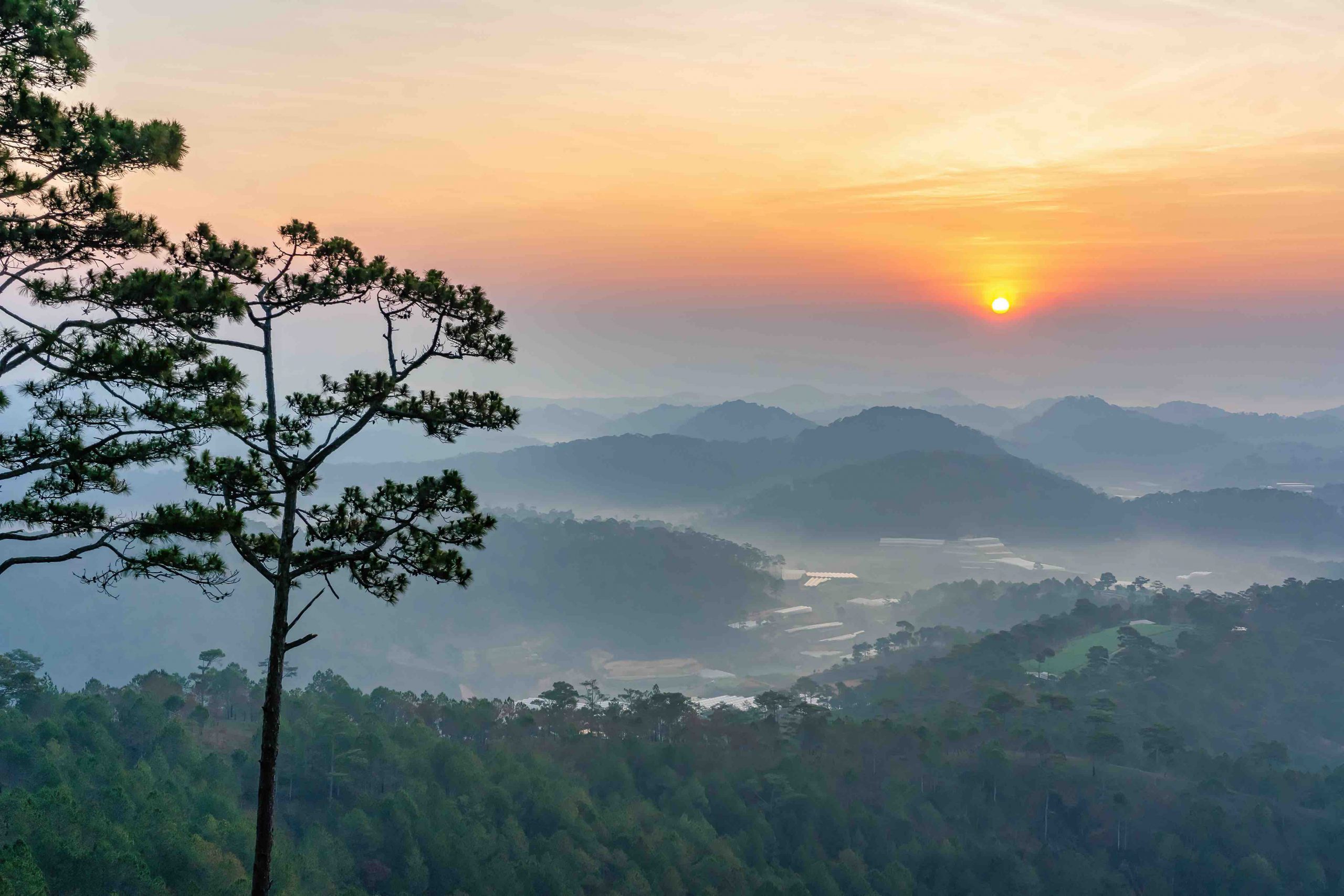 South of Dalat City lies the picturesque Tuyen Lam Lake, where streams, forests, and mountains converge. The largest freshwater lake in Dalat, Tuyen Lam was formed by a dam blocking Tia Stream, the longest branch of Datanla Stream, which originates from Phuong Hoang Mountain.