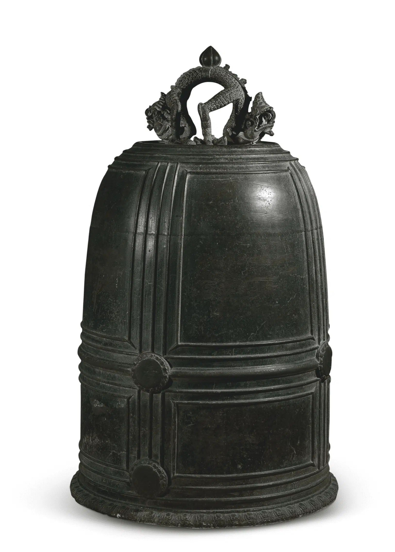 According to legends, Pulao Dragons are marine creatures that are very afraid of Fish Monsters. When chased by Fish Monsters, they emit terrifying screams. Ancient people typically carved Pulao Dragons onto bells and modelled the mallets to look like Fish Monsters to ensure that the struck bell’s peals would carry. In Vietnam, Pulao Dragons were generally depicted as having two heads.
