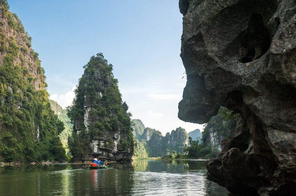 This visionary man realized that, as well as being beautiful, the mountains of Ninh Binh could be connected to Thien Truong Citadel in Nam Dinh. The towering limestone mountains and lush forests formed natural defenses, making this an ideal place to construct a citadel to which the army could easily retreat by boat from Thang Long (now Hanoi) and Thien Truong, if needed.