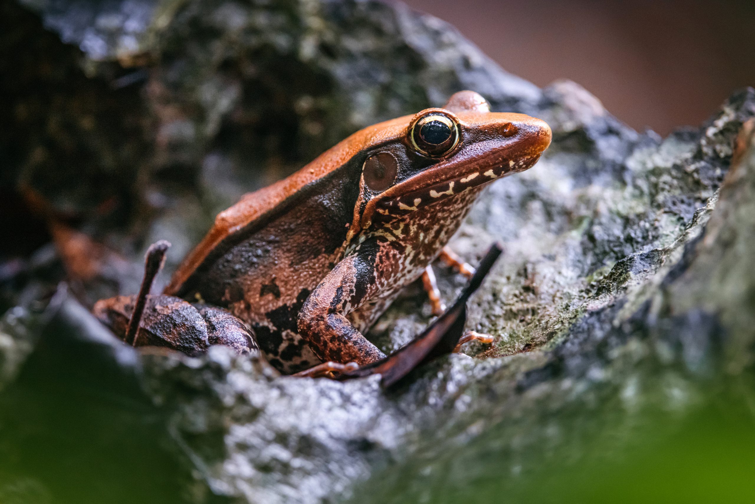 An early morning rain shower left the tropical rainforest humid and cool. The rainy season is the ideal time for amphibian reproduction and diverse floral growth. A trekking tour usually takes two to four hours to reach the park’s core zone and passes through different terrains such as swampy dirt trails, rugged streams, and steep cliffs. The journey becomes more dangerous and challenging at the end of the route as the landscape shifts to jagged ridges. It was harder for our group since we were carrying a lot of photographic equipment. We had to stop often to clean our equipment due to the high humidity, and to take photos and videos. Nevertheless, we were handsomely rewarded, finding ourselves in a pristine world full of lively activities beneath the forest’s dense foliage. Many frog species were in the midst of their breeding season, laying frogspawn of all sizes on high trees and cliffs. Iguanas seized the opportunity to bask in the sun after the rain. Giant stick insects about 30cm long lay carefully camouflaged under the foliage, only visible to eagle eyes.