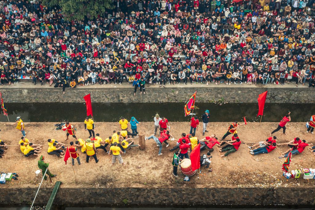 According to cultural researchers, tug-of-war contests and their associated rituals are deeply connected to the agricultural practices of wet rice farming communities. Originating from rituals to pray for abundant harvests, these tug-of-war games have become an important social activity in Vietnamese communities across the Red River Delta, North Central Vietnam, and among ethnic groups like the Tay, Thai, Giay, and Ha Nhi in Vietnam’s northern mountains.