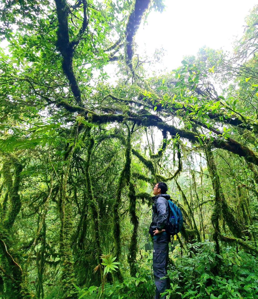 After a night resting in the mountain shelter, in the next morning, we began our ascent toward the 3,049-meter summit of Putaleng. The feeling of standing atop the peak was unforgettable – light, soaring, almost unreal. We felt as if we were floating above an ocean of clouds, with an entire forest of blooming rhododendrons stretching out beneath us. At that moment, the scene resembled a masterpiece painted by nature itself in the heart of the great mountains.