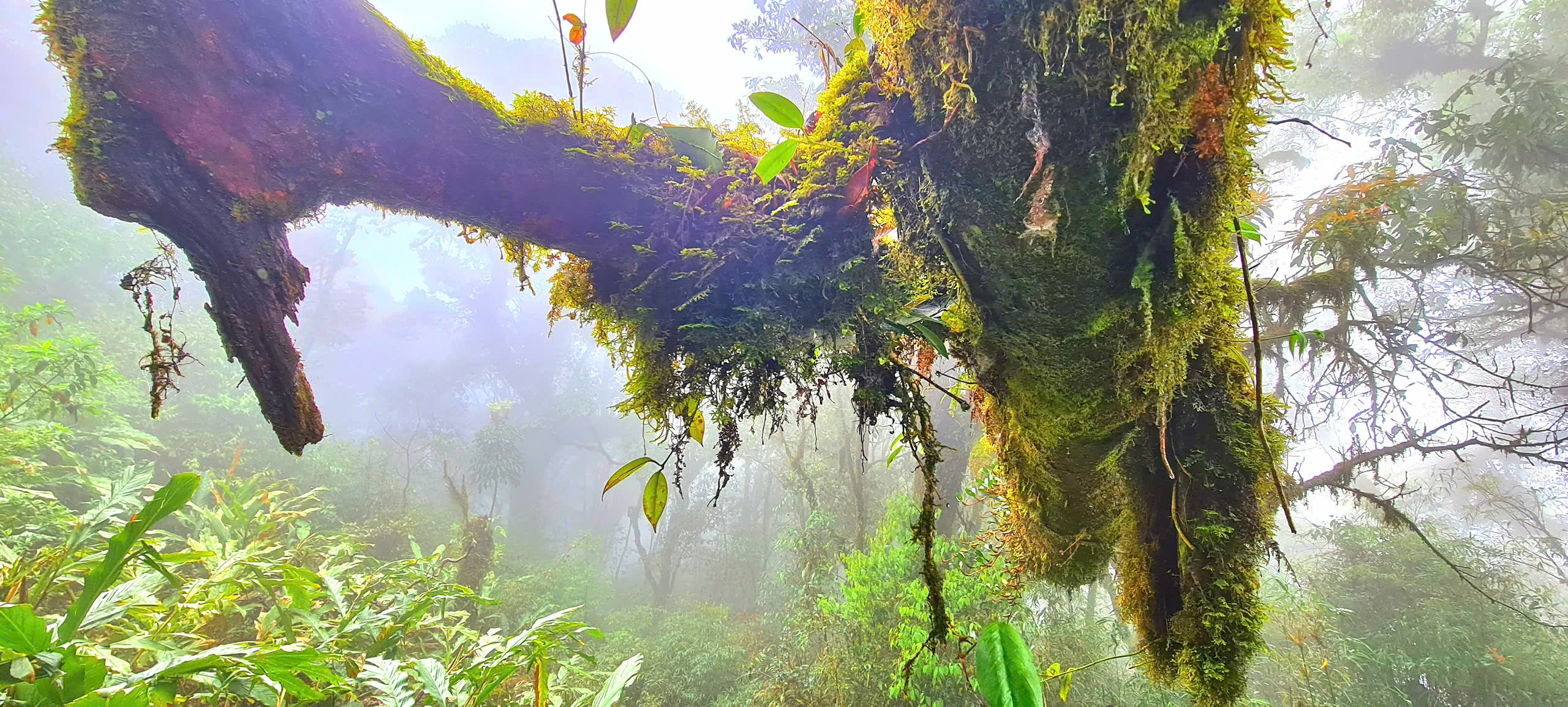Unlike the other slope, the Ta Leng side is covered in dense, damp forest and crisscrossed by streams. Though the vegetation is lush, rhododendrons are rare. This side of the mountain is home to many species, including a unique mountain frog whose tadpoles grow to remarkable size.