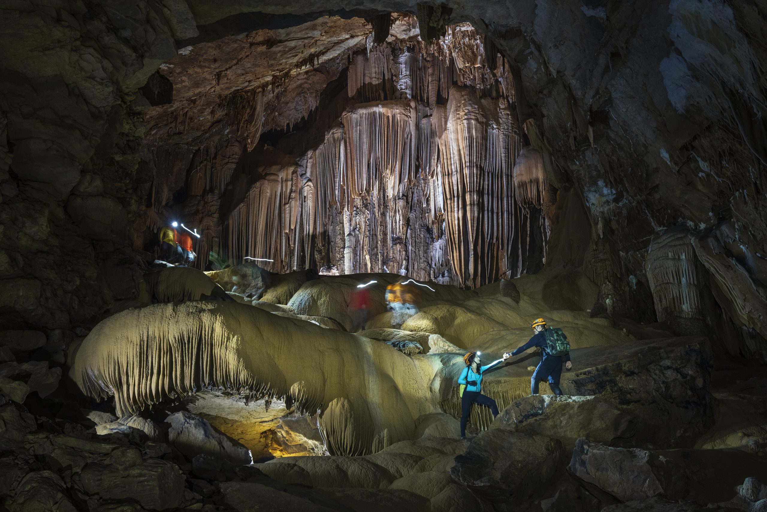 Inside the cave, every corner offers a different spectacle. In some areas, the formations resemble a shark’s jaw. In others, they are akin to the ceiling of an opera house beside a statue of an ancient guardian deity, while other formations look like jellyfish floating down from the dome. Scientists might call them ‘curtain shaped stalactites’, but visitors are free to use their imagination to name them as they wish.