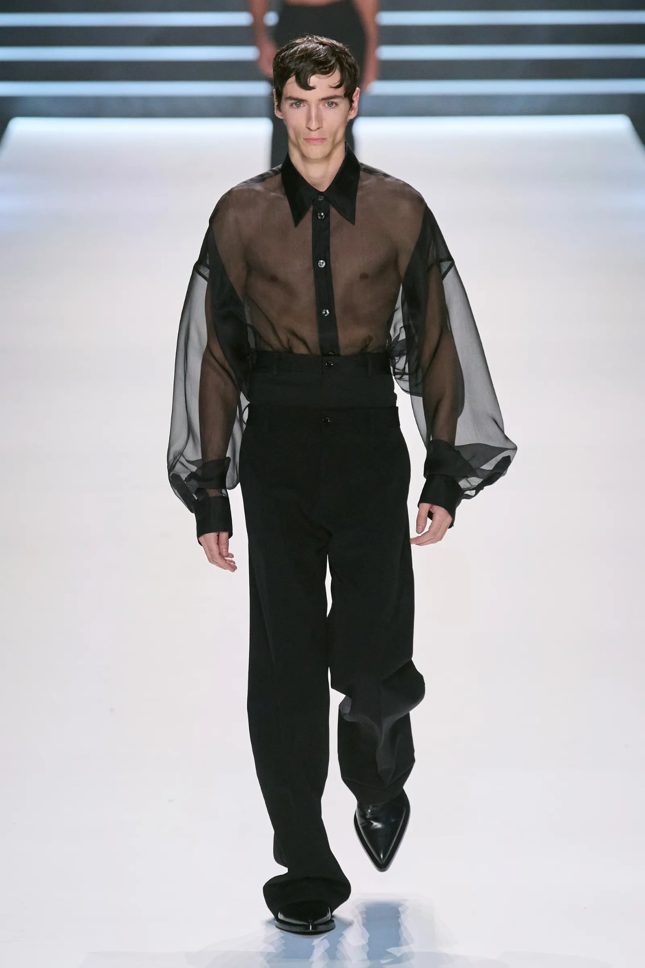 The latter part of the 2010s and the dawn of the 2020s marked a meteoric rise in global men’s fashion. Via social media, we witnessed the vibrancy of fashion enthusiasts worldwide toward men’s collections with diverse color themes. This style was pioneered by renowned brands such as Gucci (Alessandro Michele), Céline (Hedi Slimane), DIOR (Kim Jones), Jacquemus (Simon Porte Jacquemus) and Louis Vuitton (Virgil Abloh). These fashion houses also played a pivotal role in interweaving femininity into men’s attire. At DIOR, we can find the delicate subtlety of silk swaths wrapping suits, while at Gucci, the concept of childhood freedom serves as the foundation for the unisex dress and signature doll shoes. Céline, meanwhile, inherits Hedi Slimane’s wild yet gentle Rock ‘n’ Roll spirit through tight jeans, shiny leather jackets and ruffled collar shirts, while Jacquemus’s knitted crop tops reflect a liberal nomadic essence. Notably, during the era of Virgil Abloh, Louis Vuitton put forth an image blending high fashion and rugged streetwear. Feminine elements continued to make an appearance, especially in the form of a splendid white dress in the final collection of the legendary African-American designer. This trend was accompanied by many like-minded brands, such as Fendi, Prada, Versace, Saint Laurent, Dolce & Gabbana, Thom Browne, Palomo and Ludovic de Saint Sernin. Together, they have created a wave of gender-fluid fashion, which has had a profound impact on the industry and society at large.