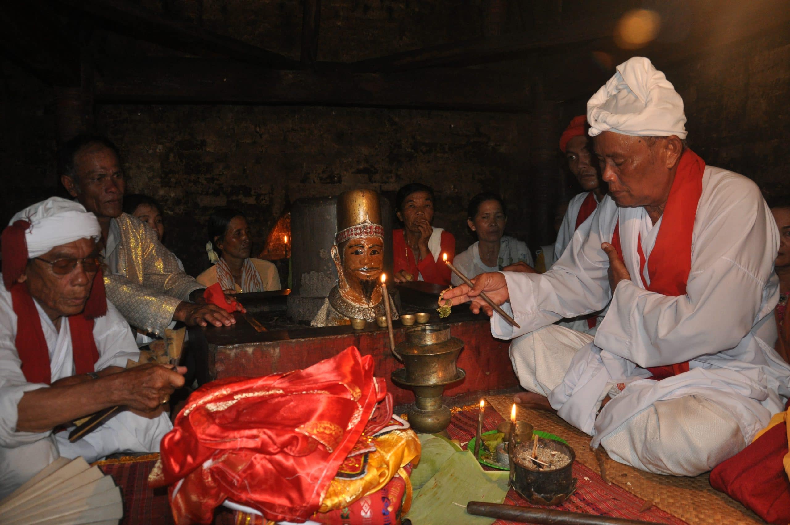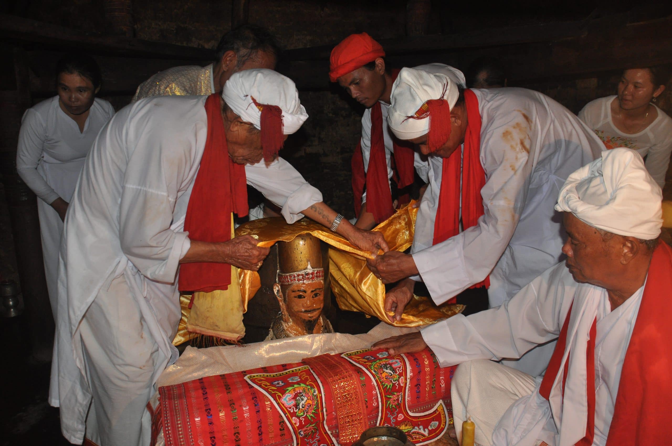 The dedication of new costumes to kings, empresses and princesses was formerly hosted at the court, but is now reenacted by the Champa with folk rituals for immortalized kings in a profoundly mysterious ambience.