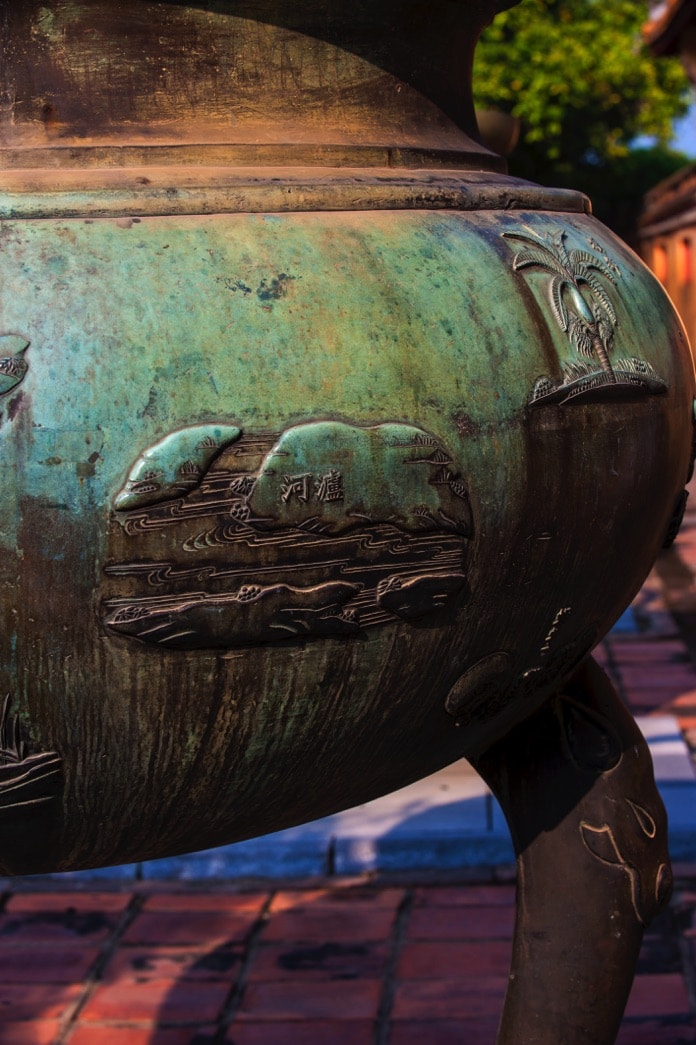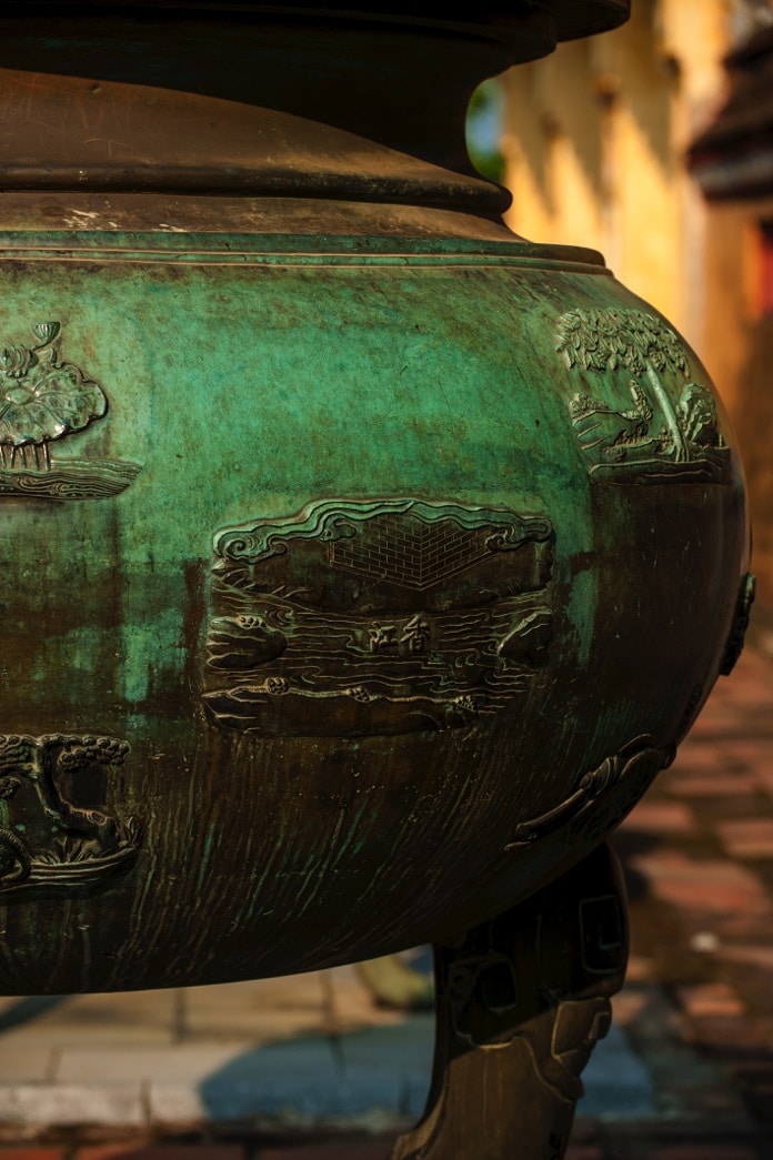 The 18 waterways on the nine Dynastic Urns present an overview of the landscape of Vietnam and demonstrate the land-settlement efforts of the Nguyen Dynasty. It’s no coincidence that when the nine Dynastic Urns were cast, the country reached its current territorial peak. The emperor behind their casting, Emperor Minh Mang, is lauded as a brilliant ruler with a great legacy.
