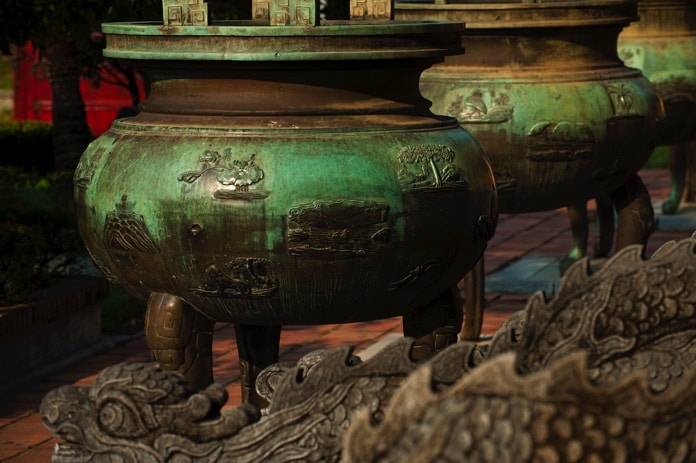 The value of the nine Dynastic Urns goes beyond their grand and solid appearance. Each urn weighs over two tons and measures approximately 2.3m high. They are a source of national pride. Emperor Minh Mang noted that these urns were several times heavier, taller and thicker than ancient Chinese urns.