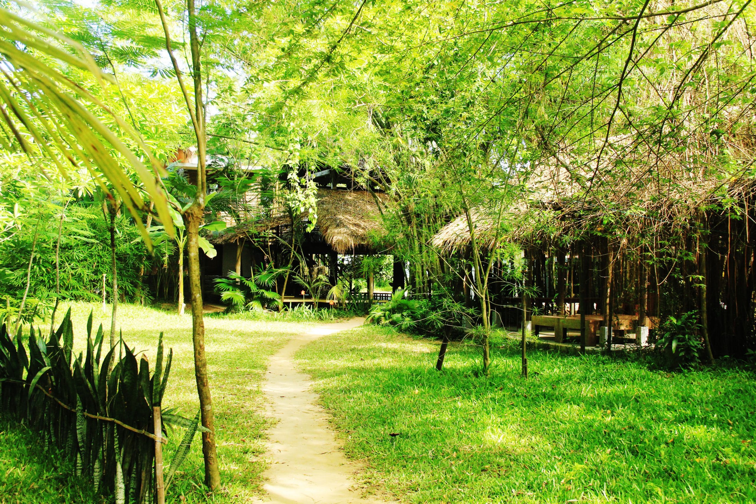 Located in the Dien Ban District of Quang Nam, Triem Tay offers some quaint homestays, ranging from simple to luxurious. Local farmers run simple but charming restaurants that serve rustic fare such as boiled vegetables, grilled chicken steamed or braised with ginger, and bowls of water spinach soup. There are some surprising and delightful touches. Along with a cup of tea visitors are offered sweet finger-sized bananas.