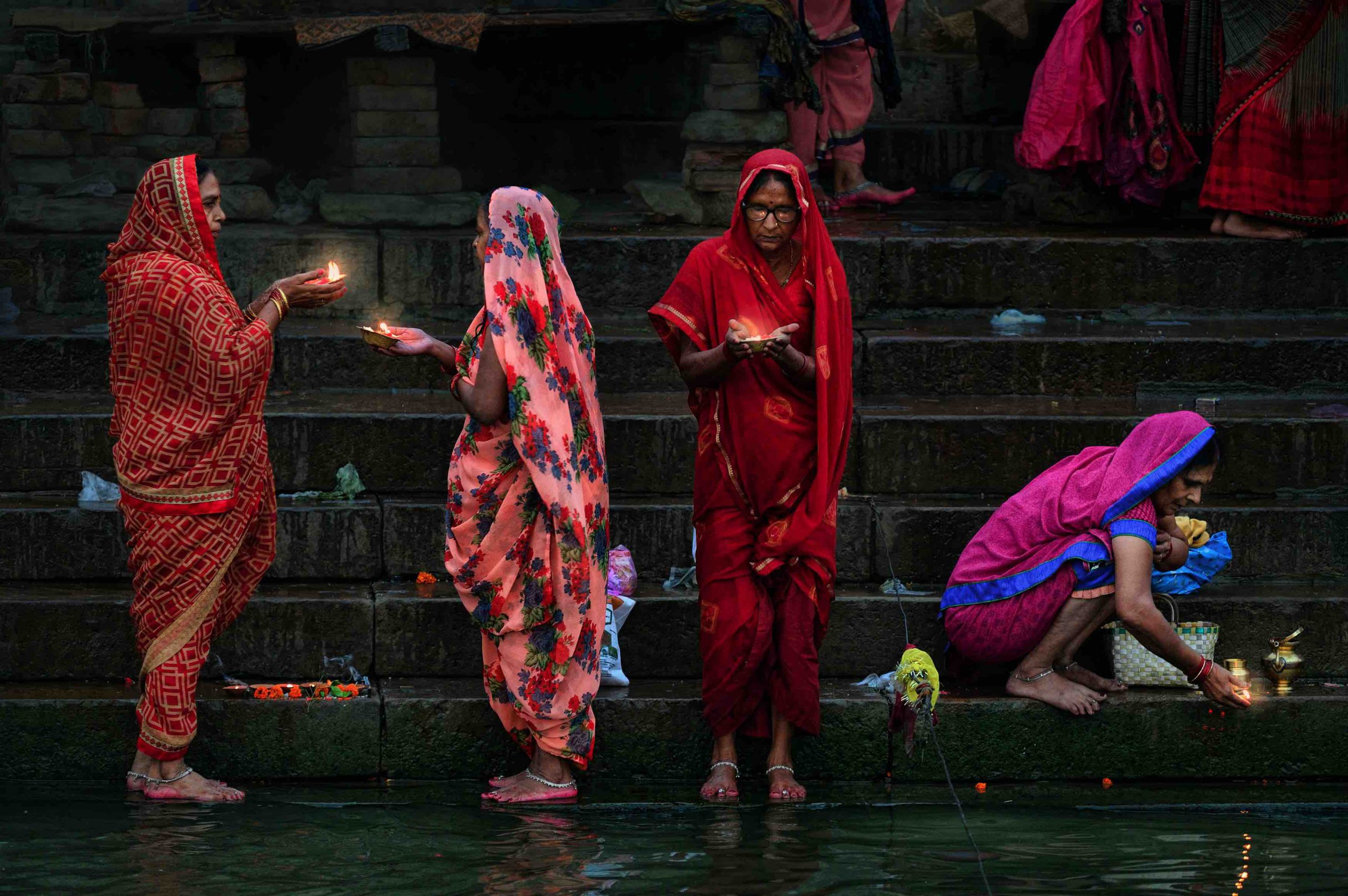 Many rituals are performed on this sacred river. I focused on observing and capturing images of a commonplace yet vital ceremony: the river offering ritual known as Ganga Aarti.
