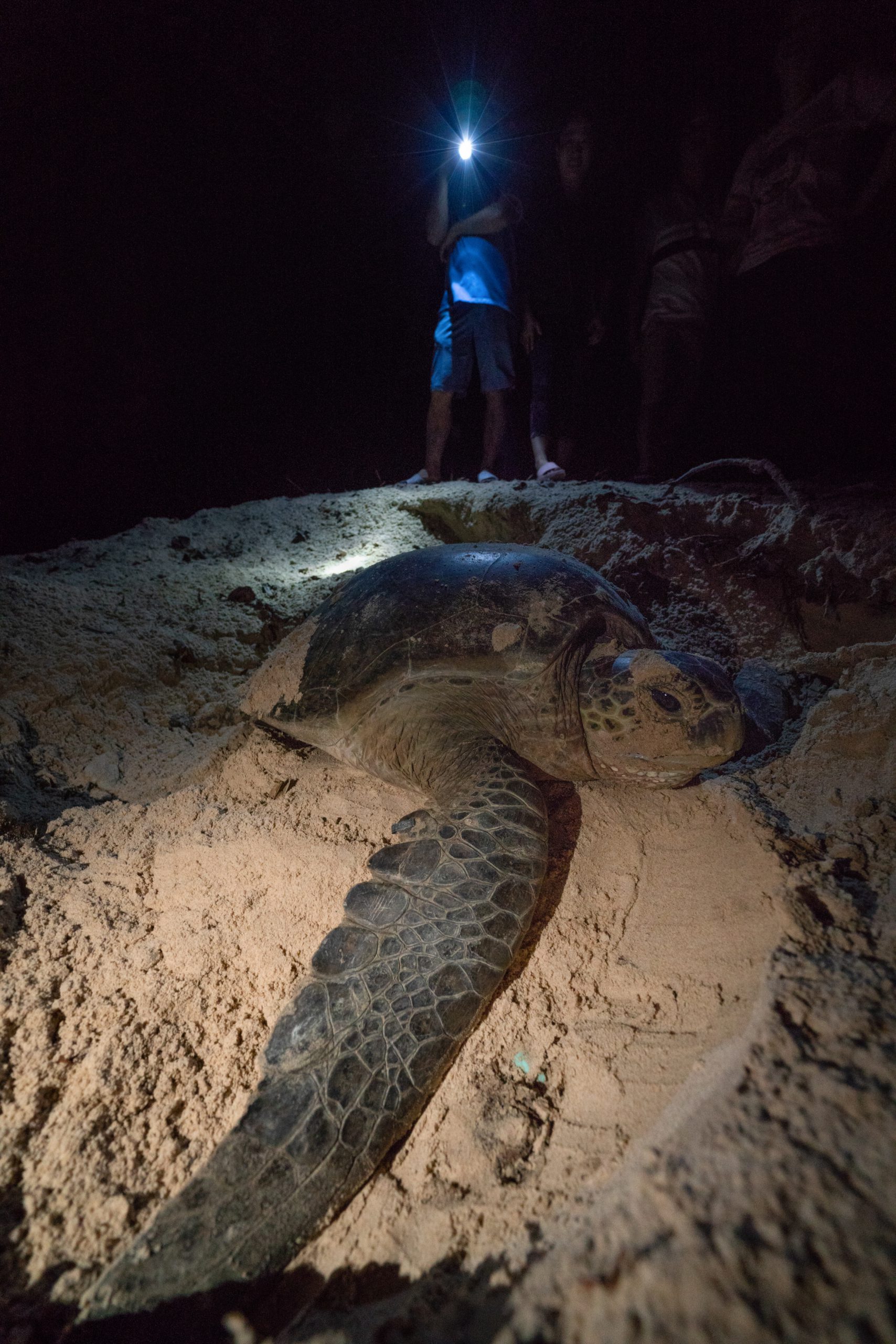Mr. Thien recounted a memory of seeing a mother turtle come ashore to lay eggs. “Some nights, I waited lying down on the beach for five hours straight,” recalled Mr. Thien. “The atmosphere of the islands is very quiet and serene, with nothing but endless night skies and waves lapping the sand. While enjoying the pure air from the pristine sea and skies, I fell asleep without meaning to. I was awakened by rustling noises to find a shadow right next to me, digging in the sand to make her nest.”
