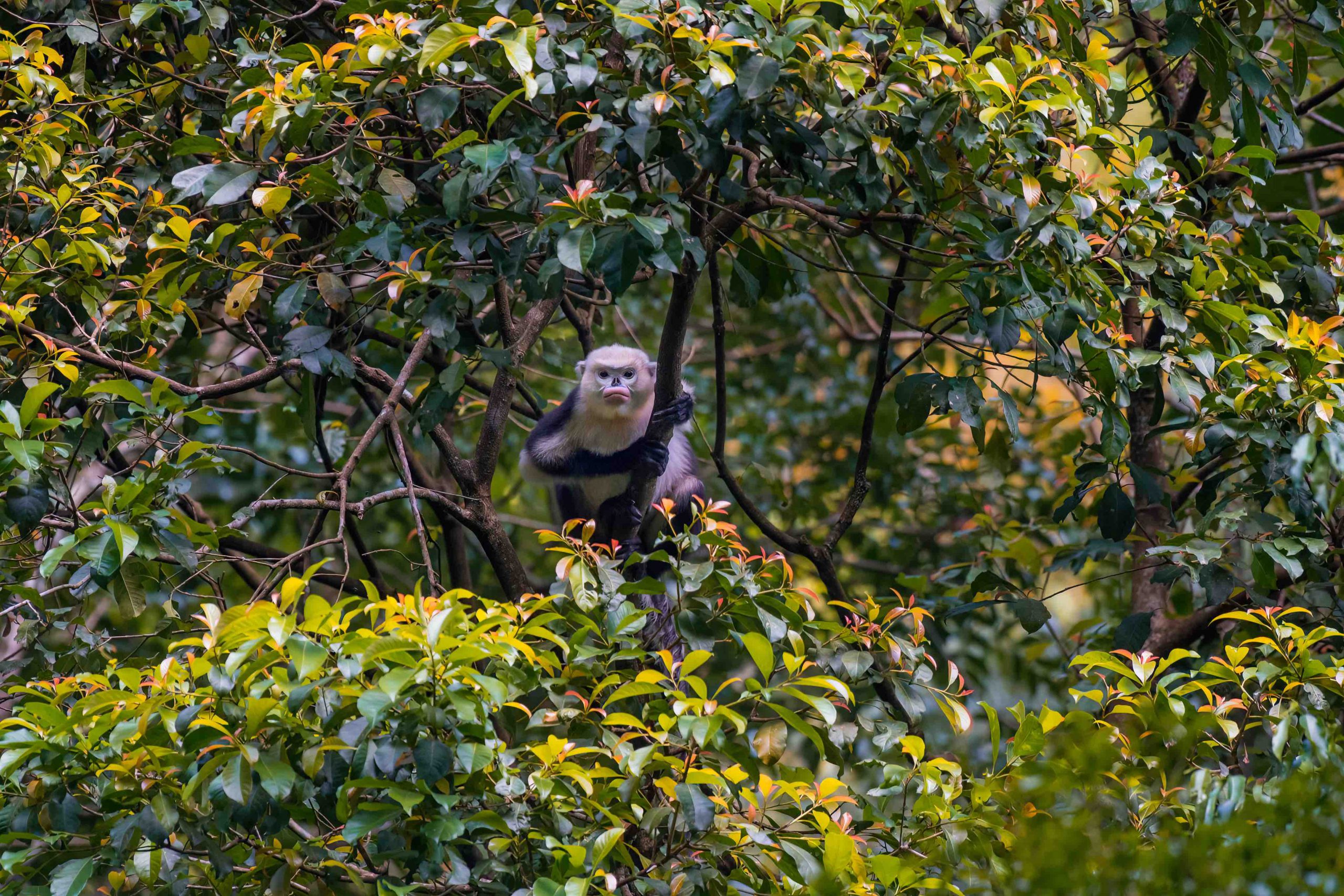 As I dozed off, a few drops of water landed on my face, startling me awake. My first thought was that the rain had restarted. But no, bright sunlight still filtered through the leaves. Something felt different as beams of light danced through the foliage… I quickly grabbed my binoculars to peer through the first layer of trees. A patch of creamy white fur appeared before me, sending chills down my spine. There it was! Although I couldn’t see its entire body, I was certain that a Tonkin Snub-nosed Monkey had appeared. Nature has crafted these creatures with remarkable camouflage patterns. Their creamy white bellies blend into the light when viewed from below while their black backs merge with the dark forest when seen from above—making them difficult for predators to spot.