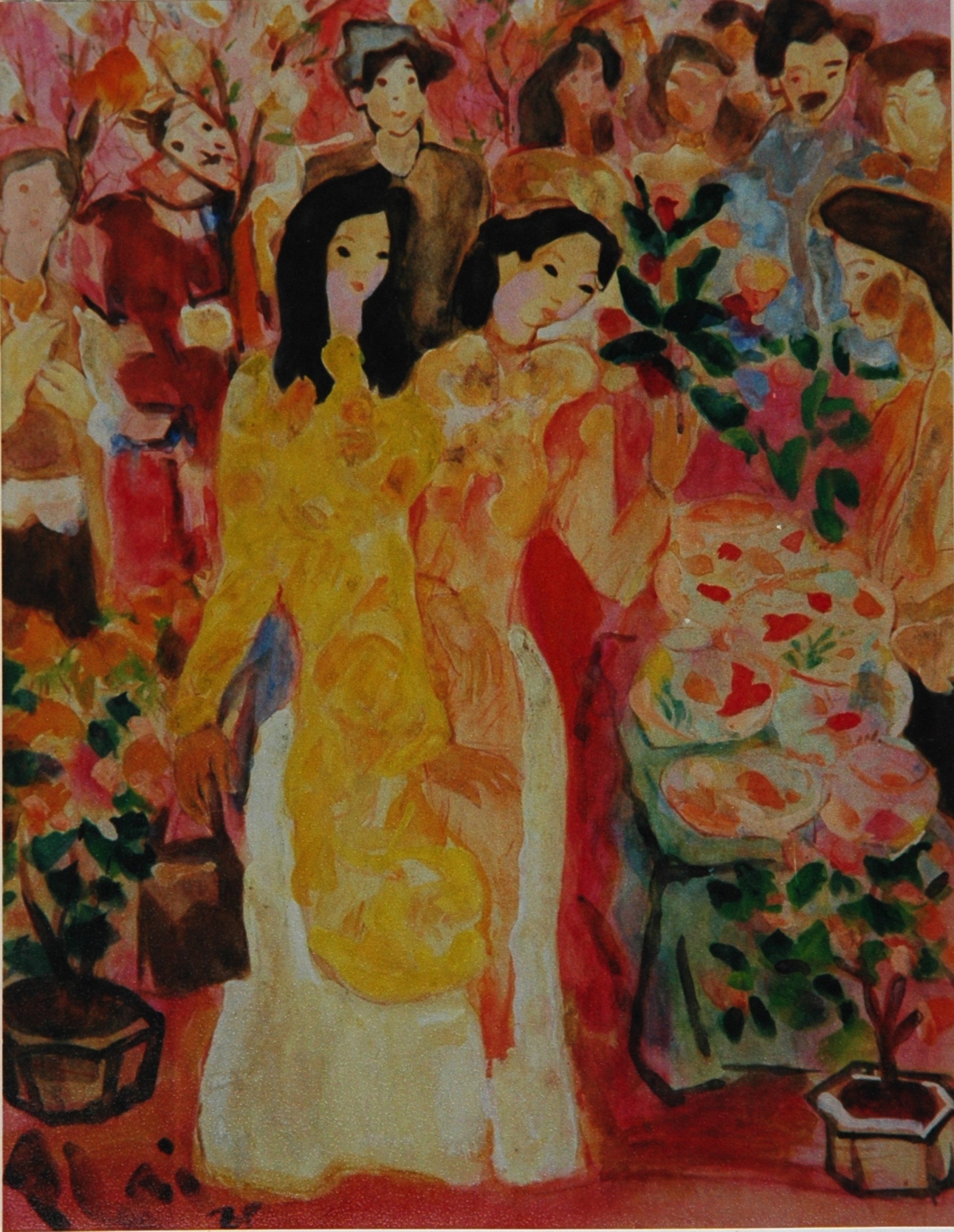 Another renowned spring-themed work, “Flower Fair” by Bui Xuan Phai, was originally in the private collection of Mr. Pham Van Bong (also known as Mr. Hang Buom) and fetched a high price at auction by Christie’s (UK) in 1995 despite its modest size of 43 x 33cm. In contemporary fine arts, spring is characterized with radiant peach blossoms in the works by Nguyen Huu Khoa or flower fields in works by Pham Luan. As the Lunar New Year comes, spring fine art exhibitions are normally hosted for audiences to admire all the shades of this special season.