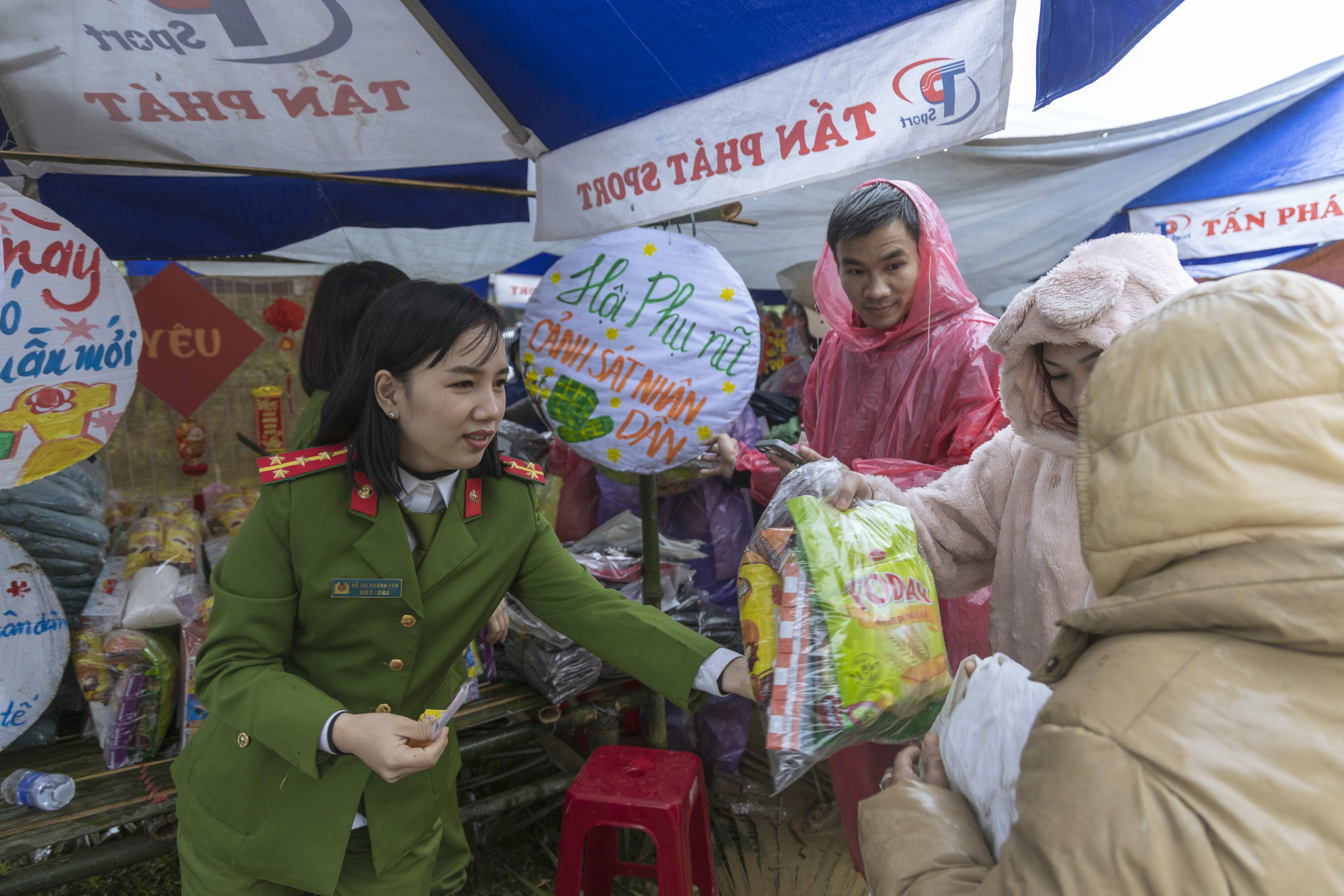 Having made our way over the steep mountain passes, we arrive at the village around 10 AM to find the market ground bustling. Volunteers, villagers, and soldiers hurriedly unload goods from the vehicles, carefully arranging each Tet gift in the pre-built bamboo stalls.