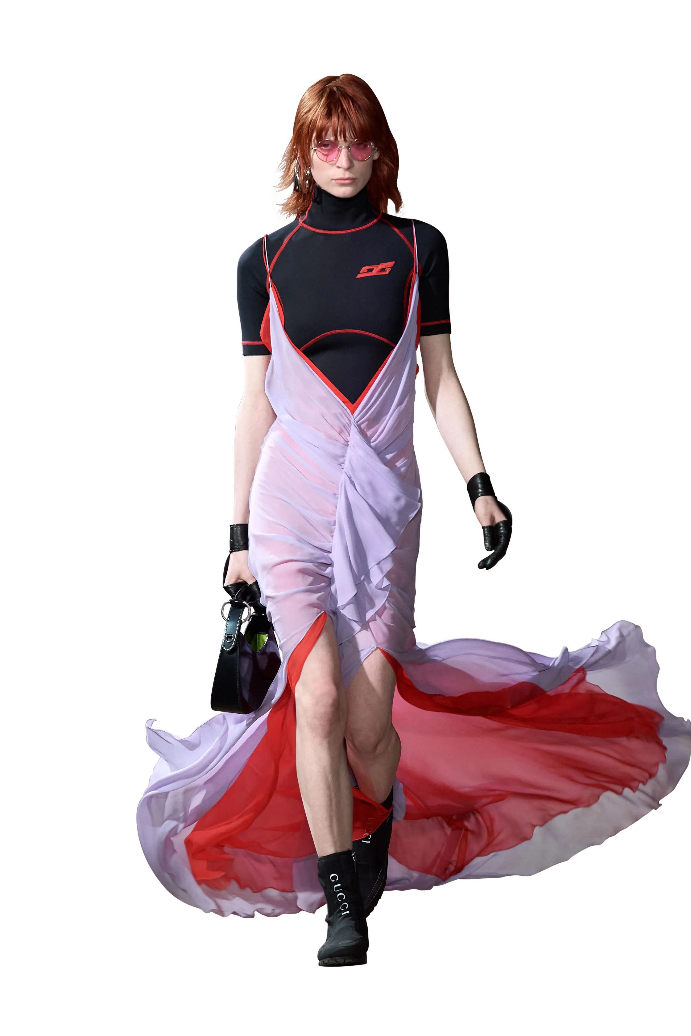 When thinking about sportswear entering high fashion, we often associate it with elite pursuits such as golf and tennis. Here, polo shirts, pleated skirts and stretchy outfits have continuously evolved to step onto the runway and become the guiding style for summer. When legendary designer Miuccia Prada said that dad’s polo shirt would become trendy, collections soon brought the sporty style to the runway. Miu Miu, for example, offered a series of stylish combinations featuring serious collared shirts paired with wide- leg shorts, or tennis-style flared skirts paired with sequin-embellished tops. Inspiration from diving also appears in the resort collections of Louis Vuitton and GUCCI. Overall, sportswear paired with sparkling festive items brings a fresh and fun summer look.
