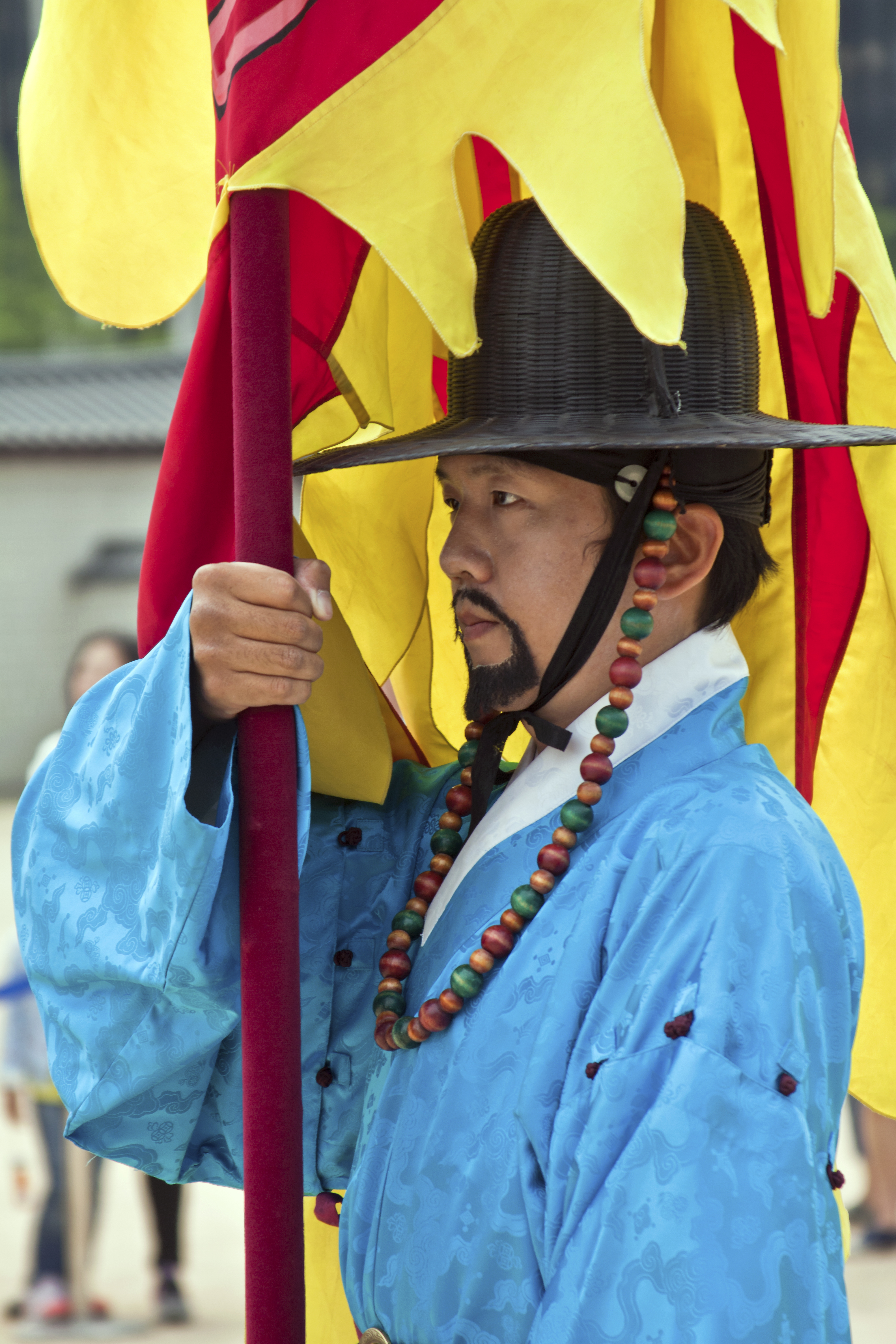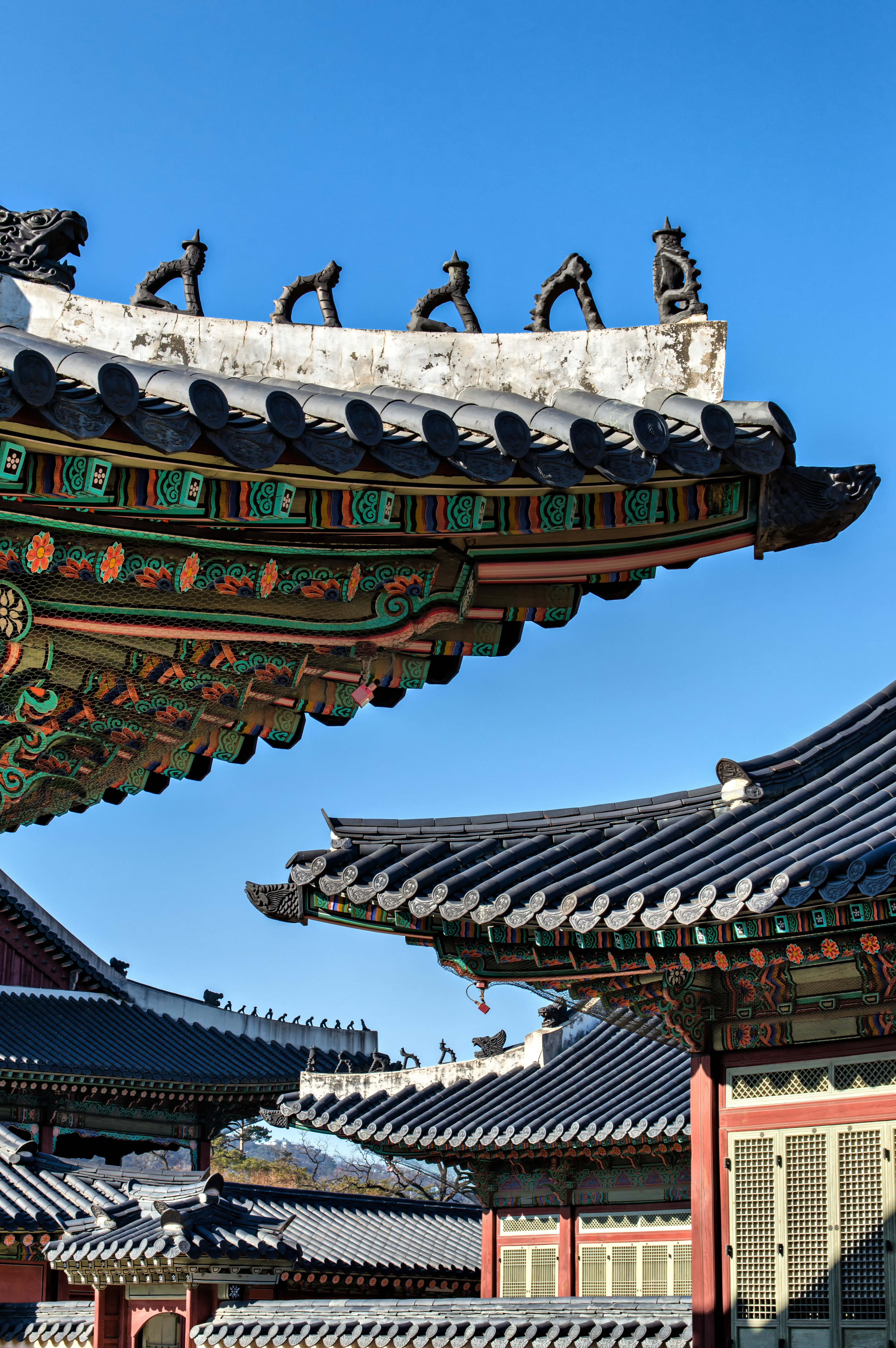 Another must-visit site in the Gyeongbok Former Palace Complex is Geunjeongjeon Main Hall, once used to receive visiting dignitaries and home to displays of gold crowns. Geunjeongjeon Hall features carvings on the ground that lead to a main hall decorated with a symmetrical pair of phoenixes that are symbols of yin – yang harmony. In this historic setting, visitors enjoy watching the changing of the guard ceremony, which takes onlookers back in time since the guards are dressed in traditional Joseon-era costumes.