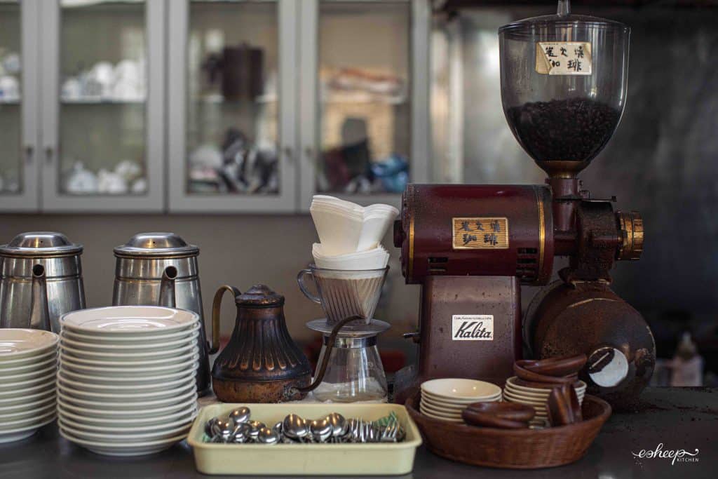The 73-year-old owner personally brews coffee and cooks light meals for lunch and breakfast for his regulars, a tradition upheld since his youth. Before him, these tasks were done by his mother, now over 90 years old. With neatly combed white hair, a stylish bow tie, and a well-tailored suit, he warmly chatted with me, a stranger – a rarity as his shop mostly serves elderly customers and families. He looked to me as if he stepped out of a magical, dreamy Studio Ghibli anime. The cafe is decorated with origami figures left by customers over the decades and Japanese manga from his childhood collection.
