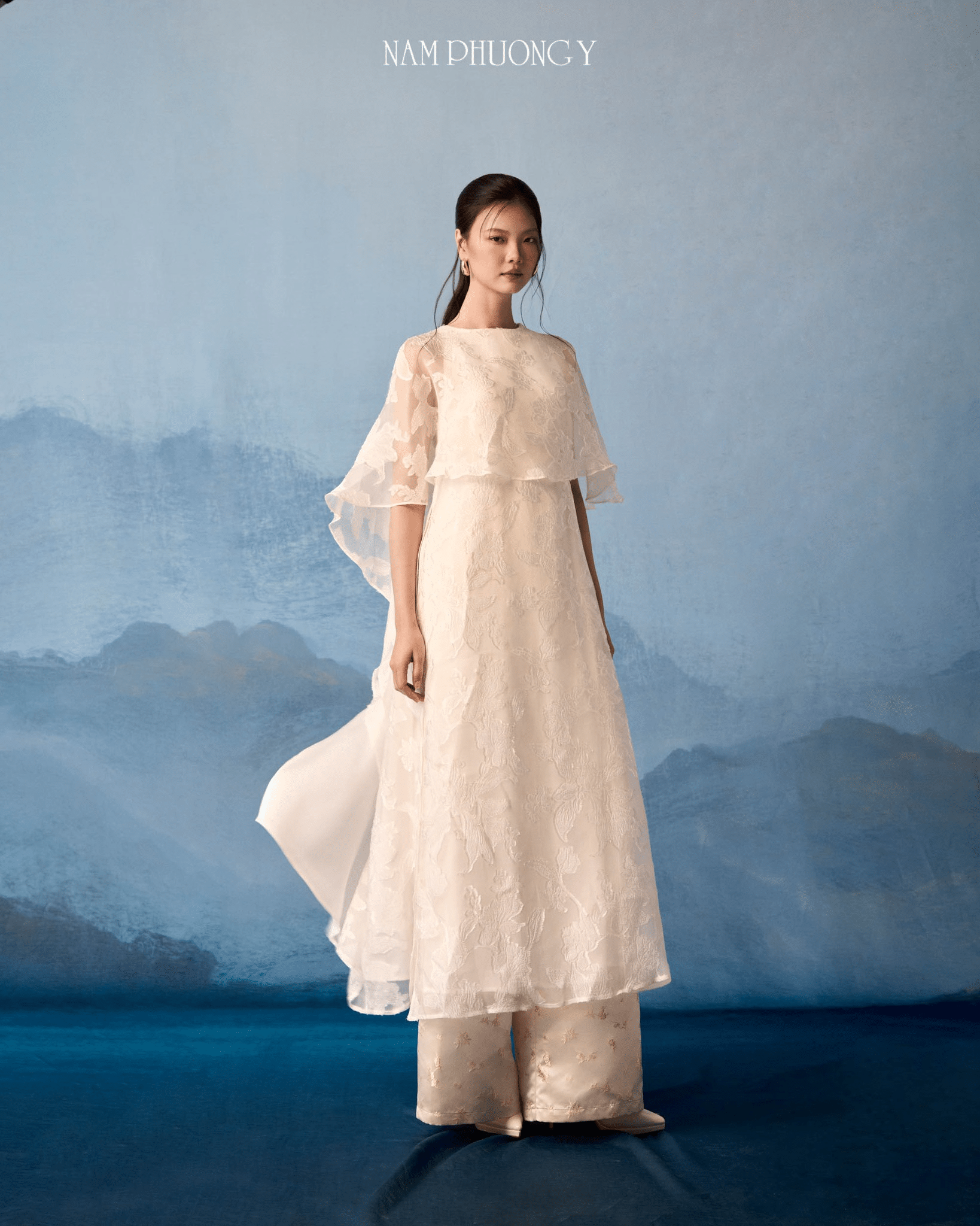 Once reserved for elegant ladies, the cape has now become an endless source of inspiration for modern ao dai designs. The sophisticated combination of the classic ao dai with Western cape styles in pristine white embodies winter days. Such graceful beauty honors the feminine charm of Vietnamese women.
