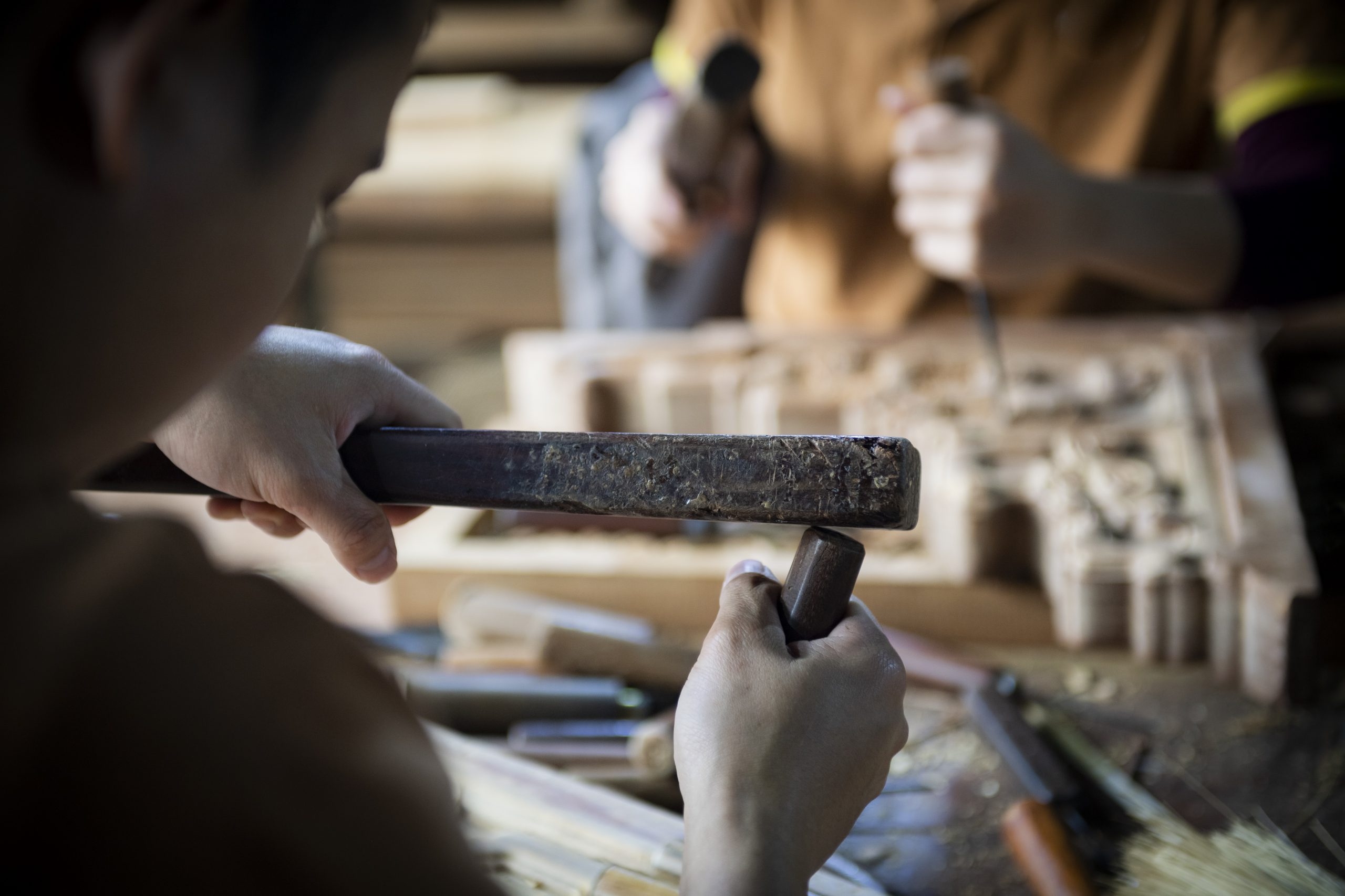 The ancients said, “The South has its bridges, the North has its pagodas, and the Doai region has its communal houses”—a nod to the outstanding woodworkers in this region. The artisans who built these communal houses hailed from the nearby craft villages of Quoc Oai and Thach That districts. The semi-mountainous region of Thach That, a forest gateway centuries ago, is still home to famous woodworking villages such as Chang Son, Canh Nau, Di Nau, Huu Bang, Huong Ngai, Ngo Sai, Yen Quan, Nghia Huong and Ngoc Than communes. Among these, villages specializing in making ancient houses are often closely connected with villages producing wooden statues and religious items, like Son Dong village in Hoai Duc district, across the Day River.