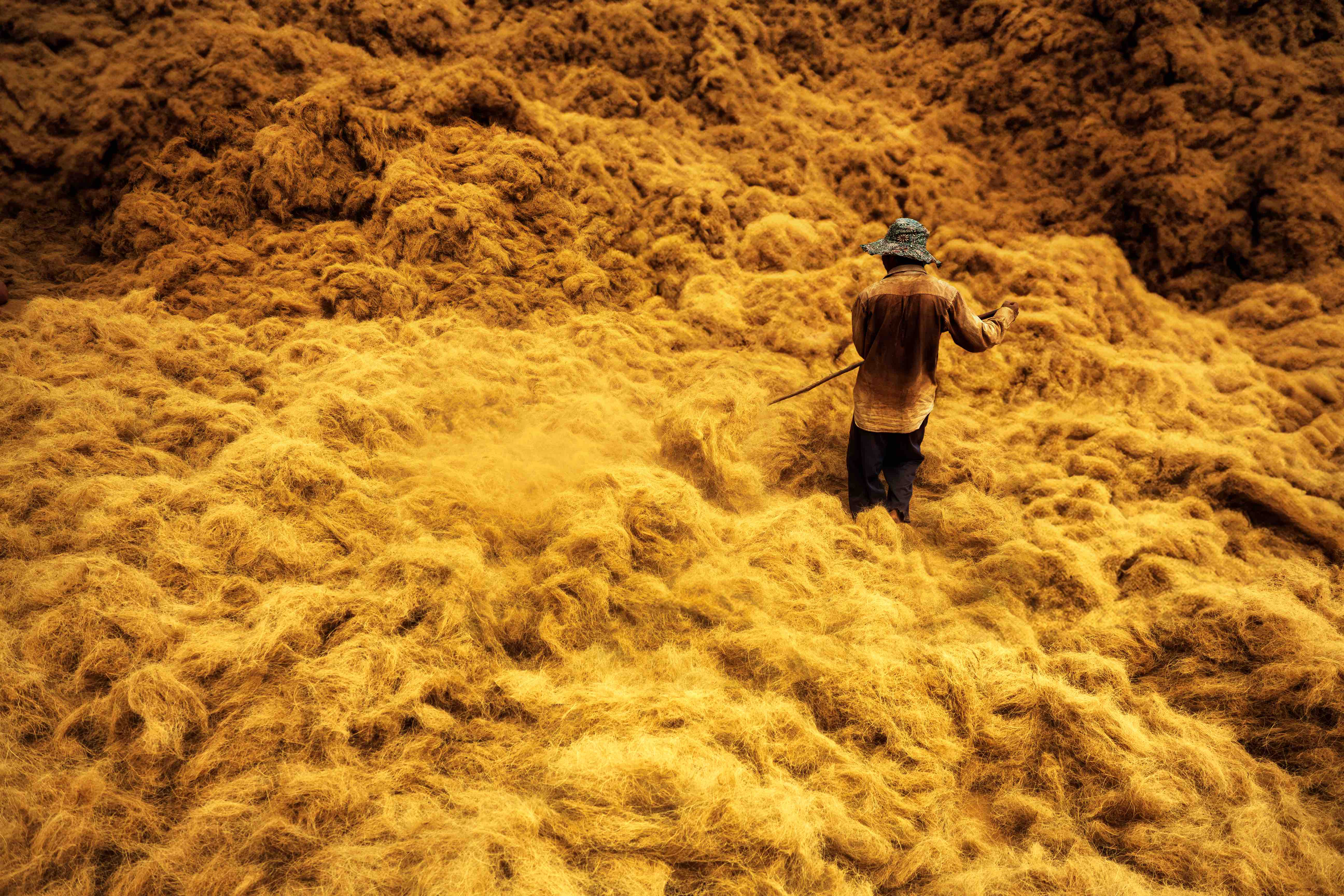 In this craft village, peeling coconut husks is a particularly challenging and risky task. The toughness of a dry coconut means only strong, agile men over the age of 30 are entrusted with this job. They forcefully throw the coconut onto a sharp blade embedded in a wooden post to partially split the husk, then use all their strength to tear it apart and extract the inner shell. Next comes the task of separating the coconut flesh. This involves splitting the shell open and carefully scraping out the flesh with a specially curved sharp knife. The freshly extracted flesh, the most valuable part of the coconut, is then sorted for various production needs.