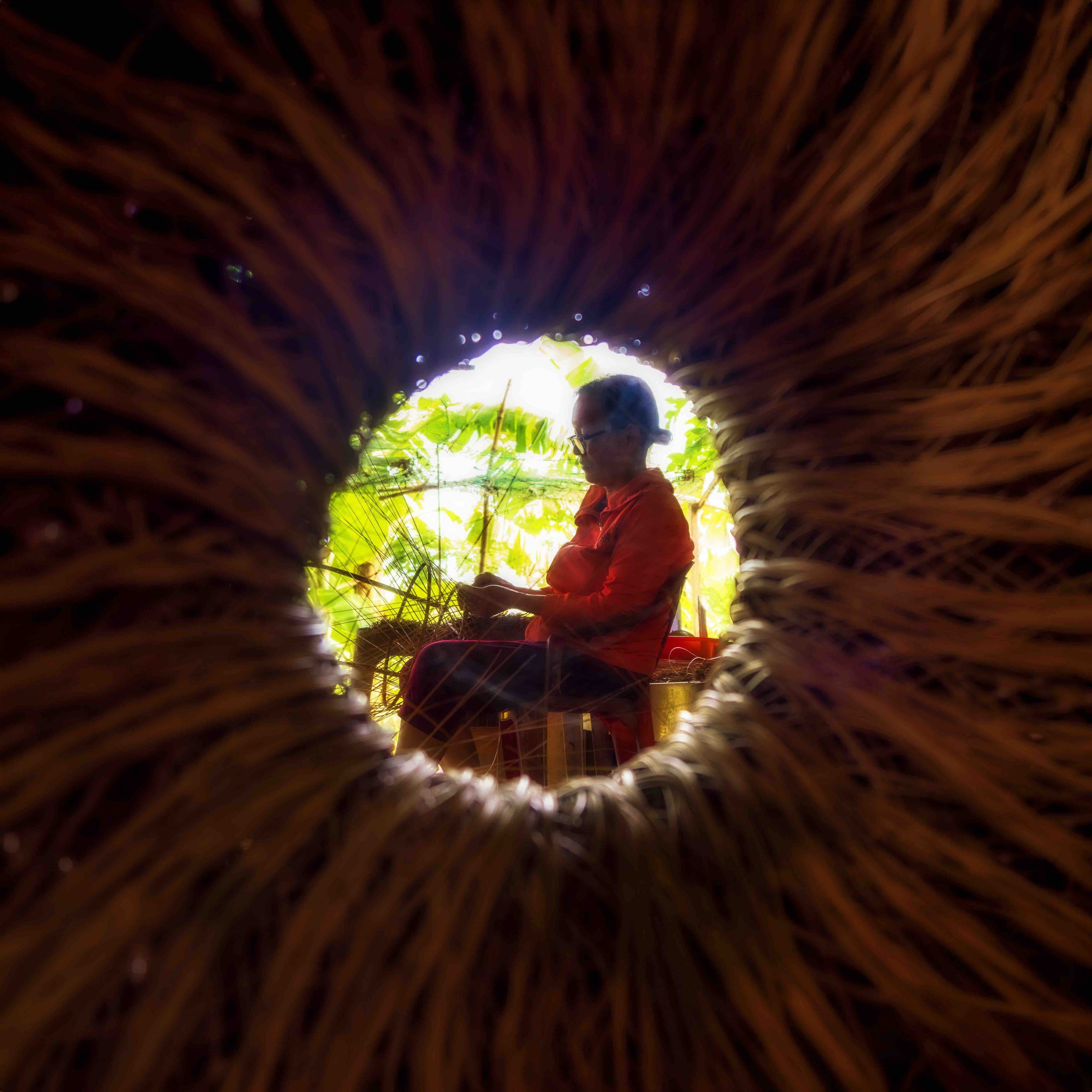 The artisans skillfully select coconut fronds and craft intricate, beautiful designs. Despite the hard labor involved, they create products so appealing that some are even exported to foreign markets. According to residents, basket weaving has been passed down through generations, preserving the vibrant memories and soul of this craft village.