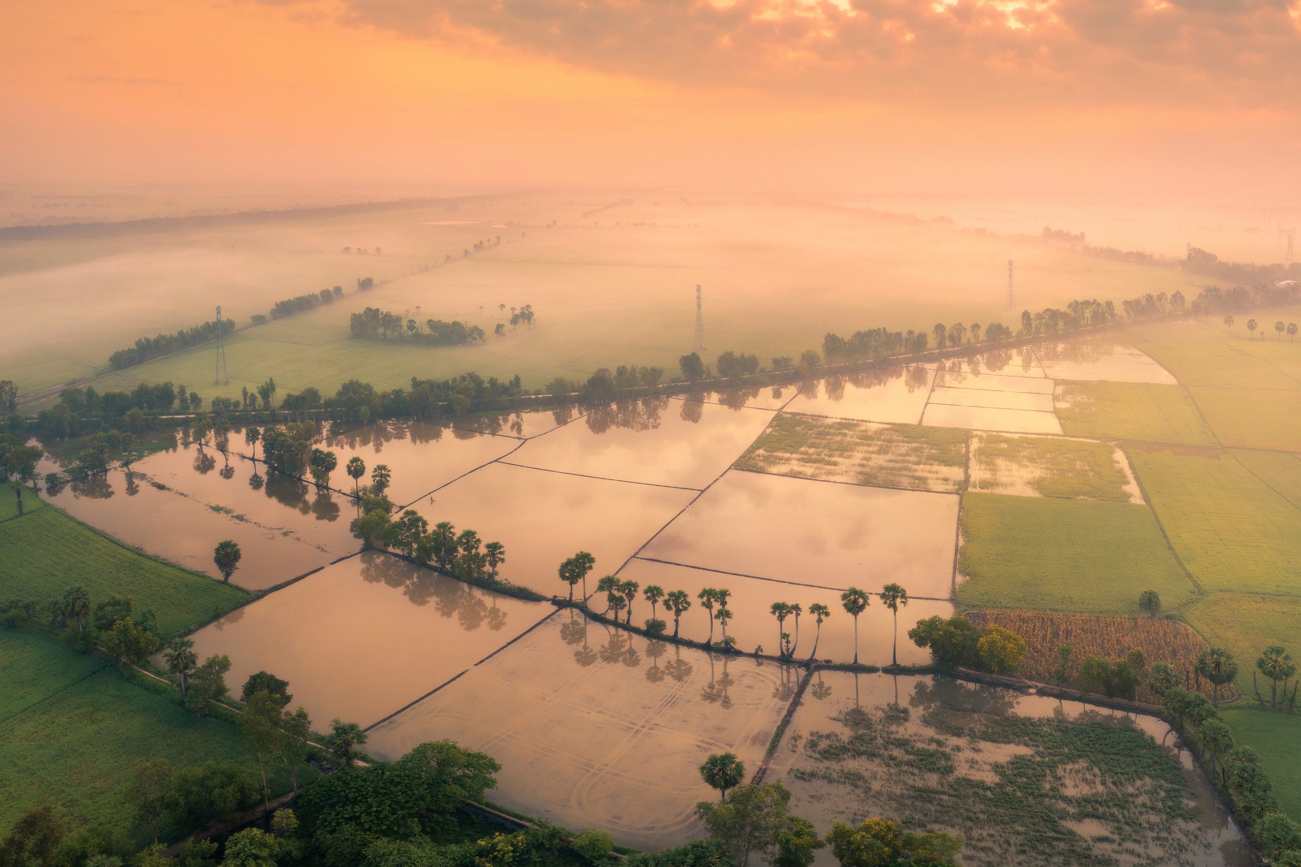 Indeed, it is not an overstatement to regard the Seven Mountains region as the “heart of palm trees” in the remote Southwest frontier. In the dry season, rows of lush palm trees stretch toward the sky, standing resilient against the sun and wind, symbolizing the endurance and perseverance of the Khmer people. Wandering along the roads in Tinh Bien, visitors are amazed by the beauty of the “twin palms” in the vast rice fields in Van Giao commune, or the sight of straight rows of tall Palmyra palms casting their shade in An Nong commune. Tourists can easily witness scenes of cattle crossing the Palmyra palm fields in the dry season or the “dance” of locals skillfully climbing the palm trees to collect sweet sap from the flowers’ pistils. Particularly, during the flooding season, photographers flock to the Palmyra palms behind the Khmer temple named “Sà-Đách-Tót” in Vinh Trung commune (Tinh Bien). Many beautiful photographs were born at this site, featuring scenes of fishermen casting nets on the lake, which reflects the legendary rows of palm trees.