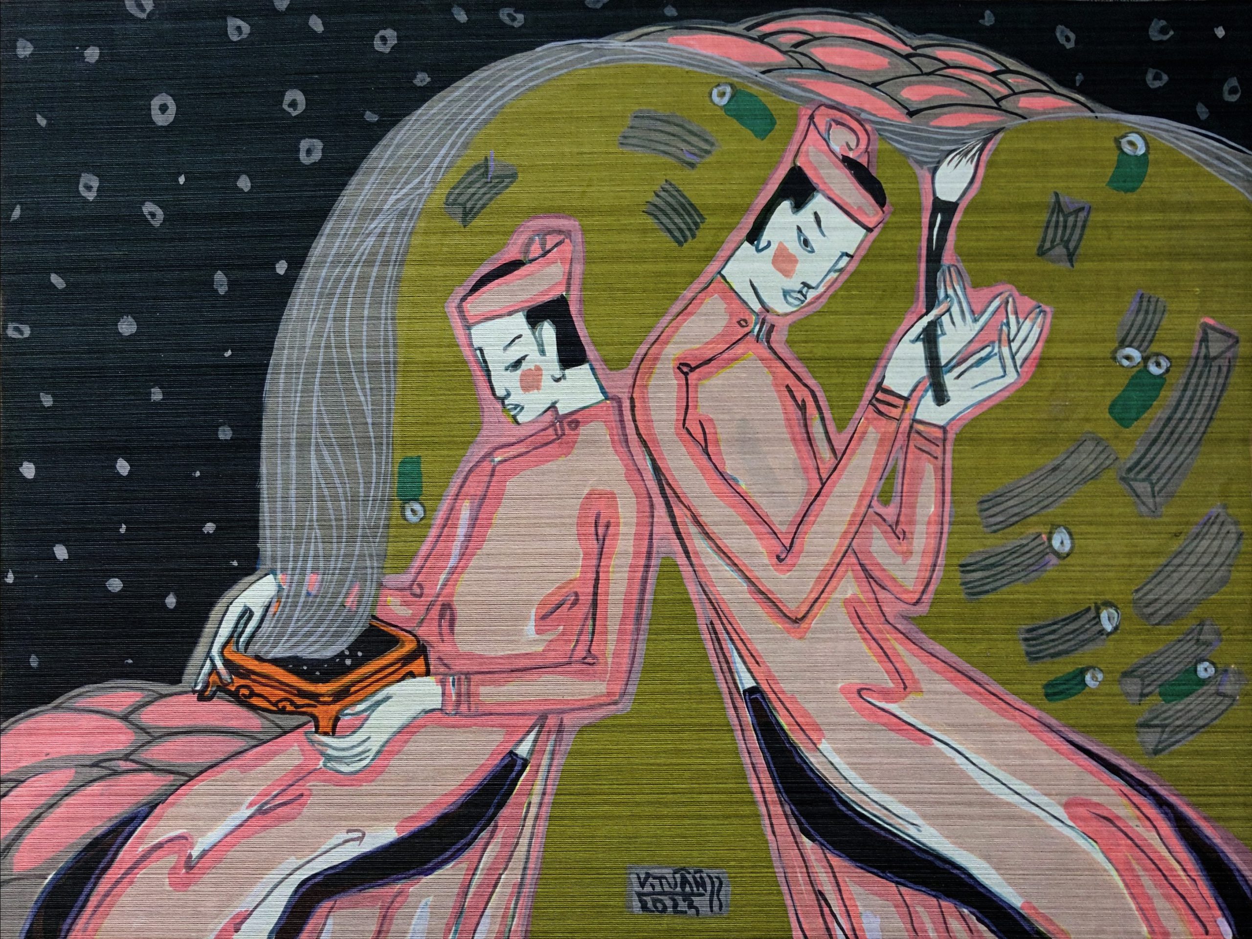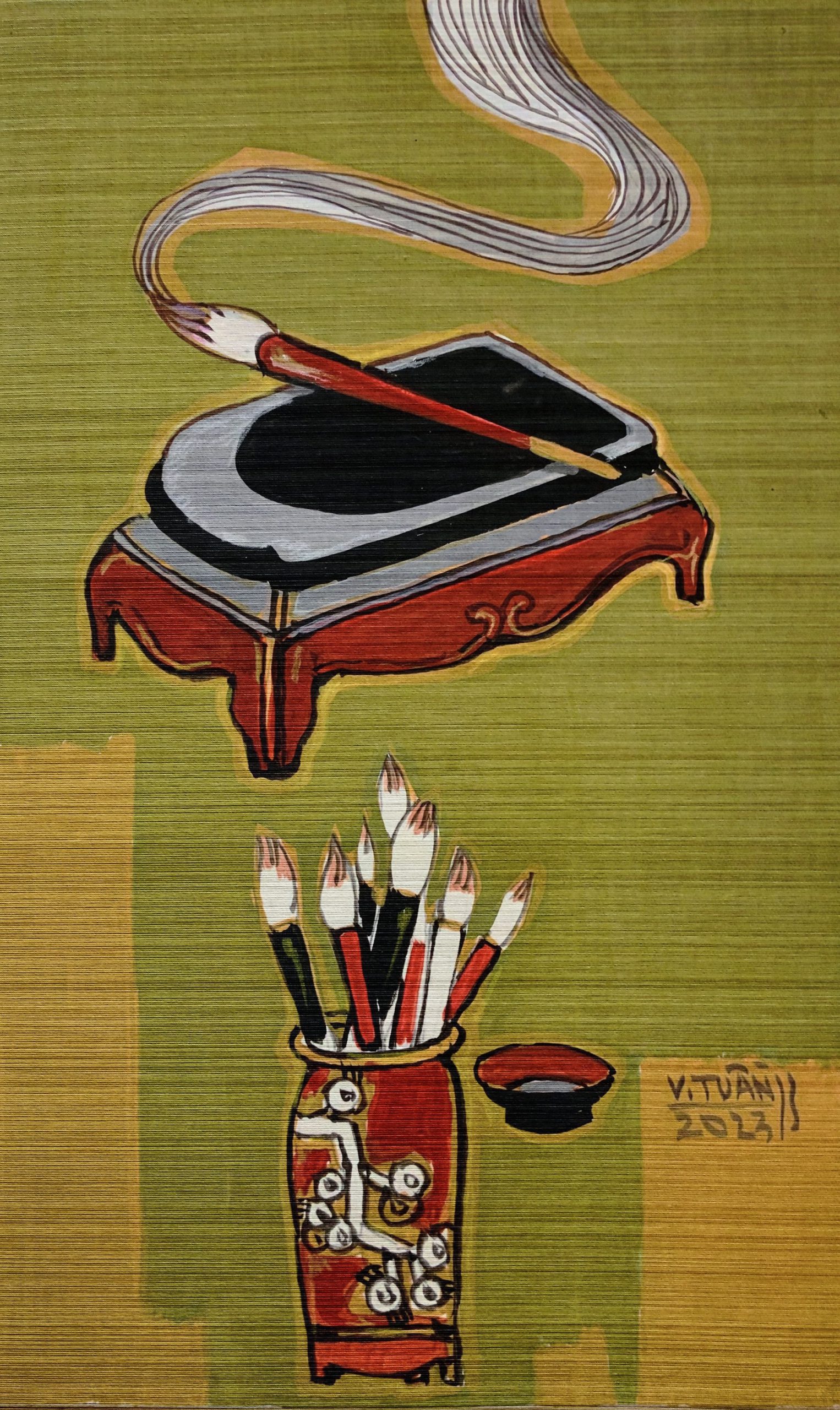 Artist Vu Dinh Tuan was born in 1973. He is a lecturer at the Vietnam University of Fine Arts, a member of the National Art Council, and Vice Chairman of the Art Council of the Graphic Art Department of the Vietnam Fine Arts Association. This creative artist has won over 20 art awards and held 8 solo exhibitions from 2009 to the present. He was chosen as the “representative artist of Vietnamese fine arts during the 30-year renovation period”.